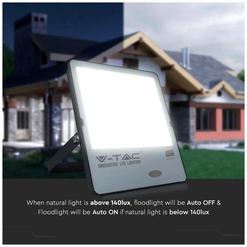 Παρακάτω υπάρχουν περισσότερες πληροφορίες για το προϊόν V-TAC με SKU 20183 , κατηγορία Προβολείς – Με αισθητήρα : Pro VT-272 power LED προβολέας με ισχύ 200W Η δομή του προϊόντος είναι από μαύρο χυτό αλουμίνιο και κάλυμμα παγωμένου γυαλιού -Η υψηλή φωτεινότητα των προβολέων απόδοσης έχει αναλογία 100 lm/W, εγγυάται δέσμη φωτός 100° και φωτεινή ροή 20000 lm.