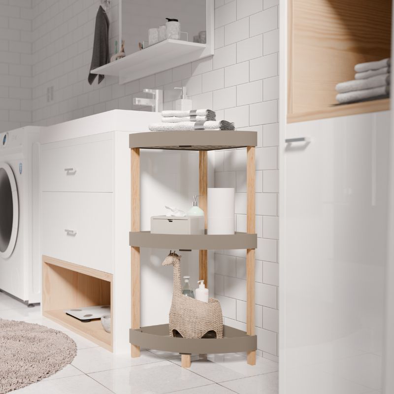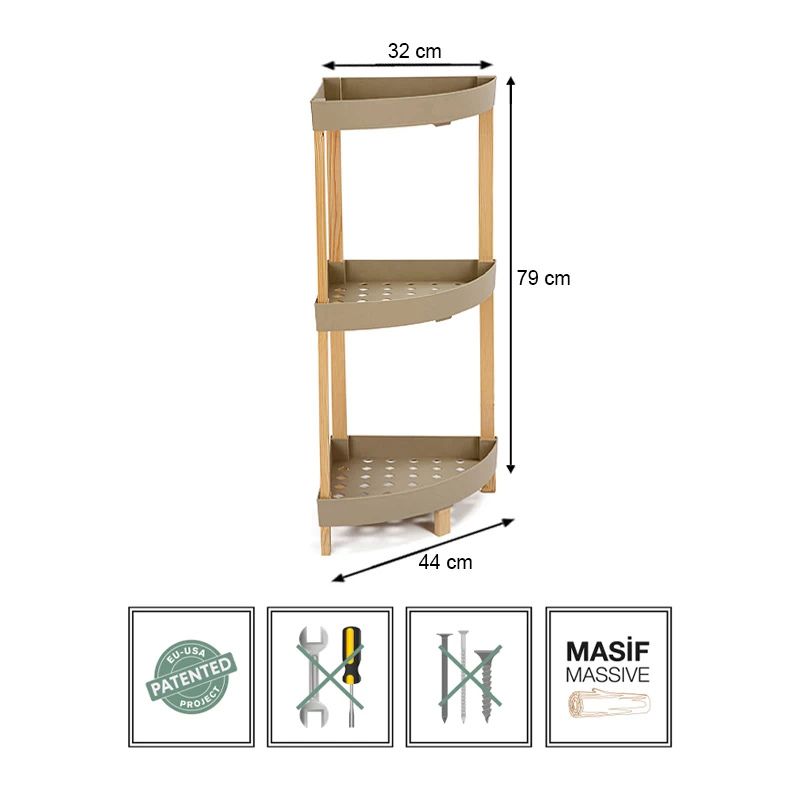 Ραφιέρα δαπέδου πλαστική – ξύλινη χρώμα φυσικό – μπεζ 44x32x79εκ.