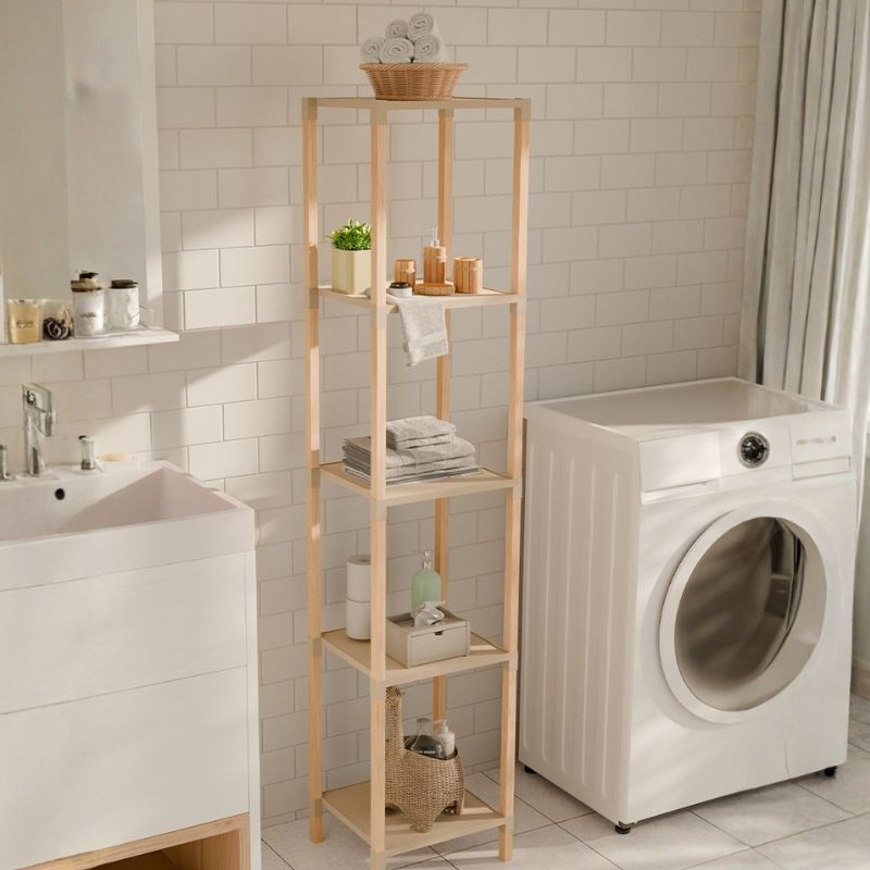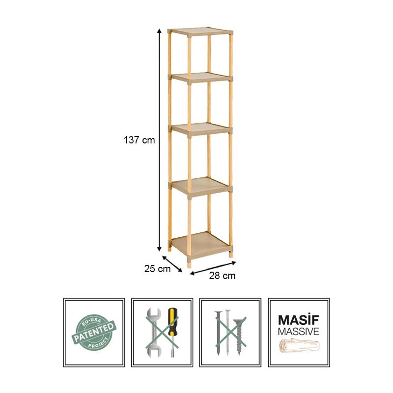 Ραφιέρα δαπέδου πλαστική – ξύλινη χρώμα φυσικό – μπεζ 28x25x137εκ.