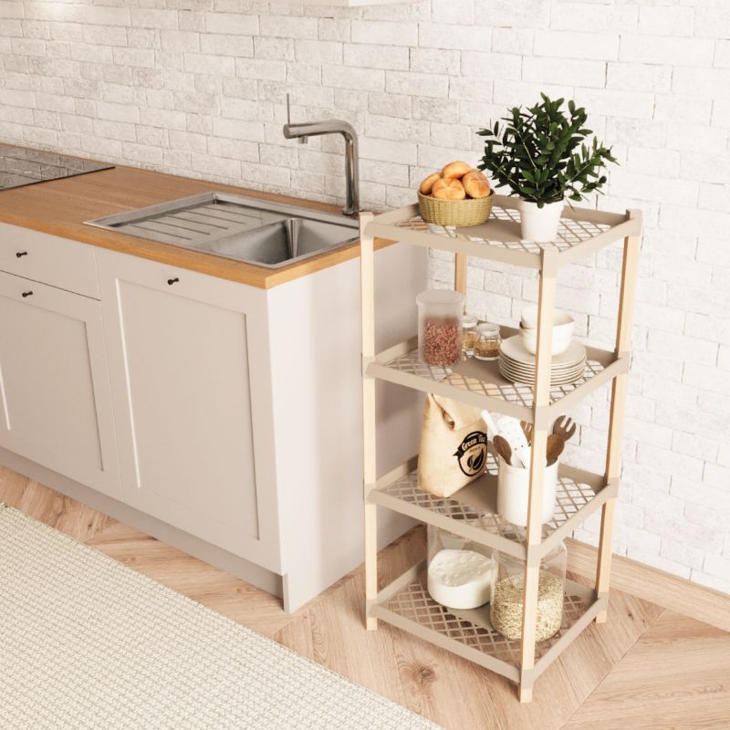 Ραφιέρα δαπέδου πλαστική – ξύλινη χρώμα φυσικό – μπεζ 45x38x112εκ.