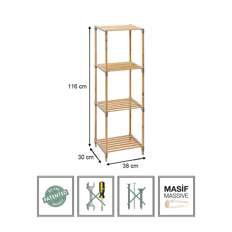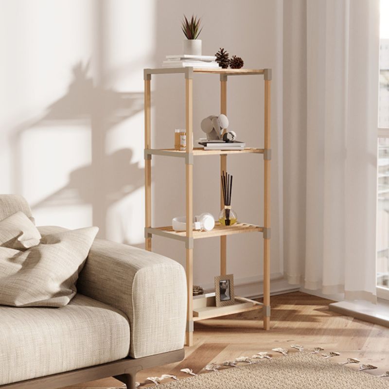 Ραφιέρα δαπέδου ξύλινη – πλαστική χρώμα φυσικό – μπεζ 38x30x116εκ.