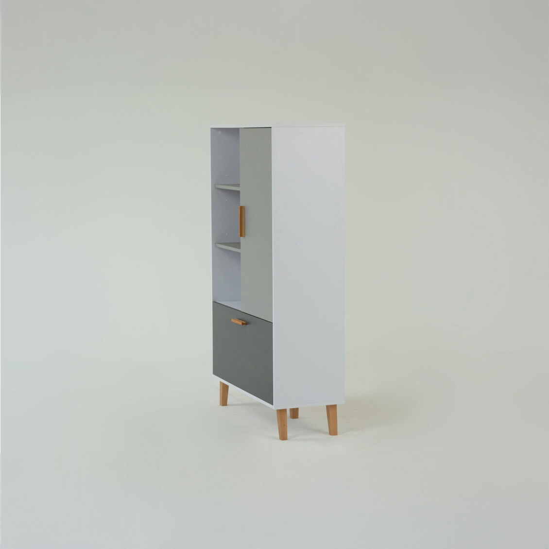 Ραφιέρα Timmy, εξαιρετικής ποιότητας και υψηλής αντοχής, σε ιδιαίτερο συνδυασμό τριών χρωμάτων λευκό, γραφίτη, γκρι.