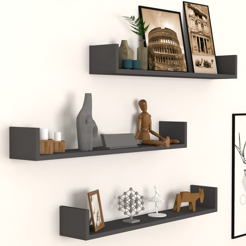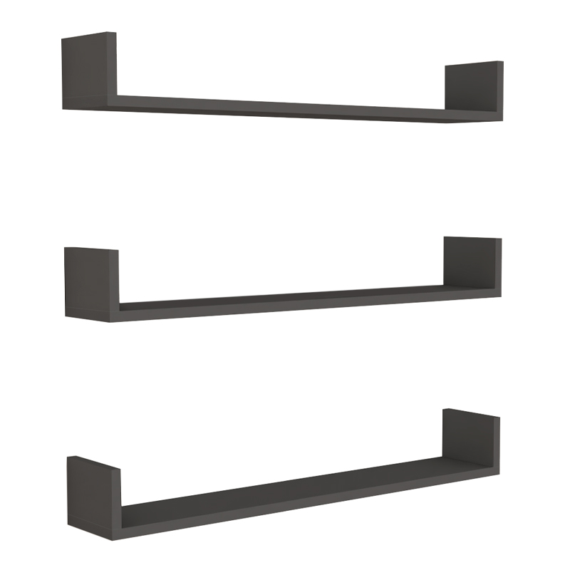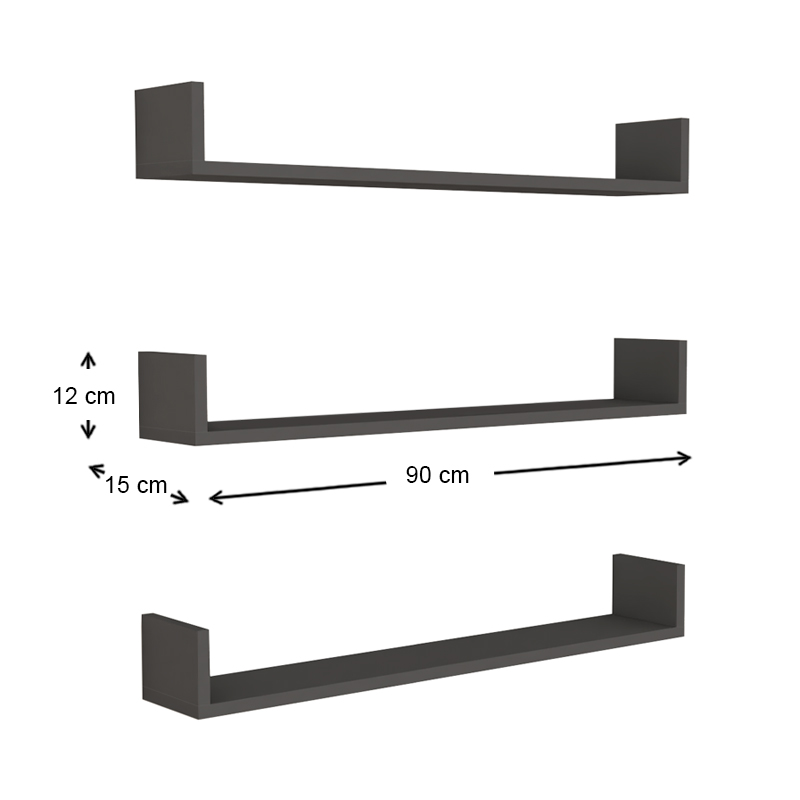 Ραφιέρα τοίχου Tyrion Megapap 3 τεμαχίων από μελαμίνη χρώμα ανθρακί 90x15x12εκ.