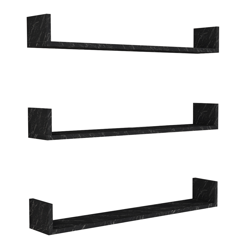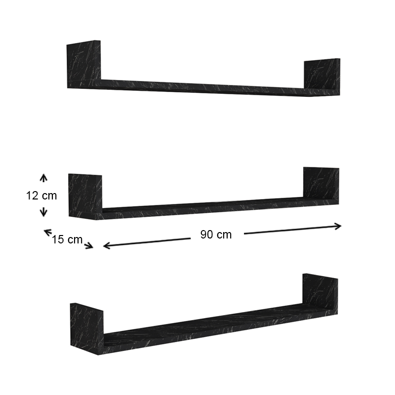 Ραφιέρα τοίχου Tyrion Megapap 3 τεμαχίων από μελαμίνη χρώμα μαύρο εφέ μαρμάρου 90x15x12εκ.