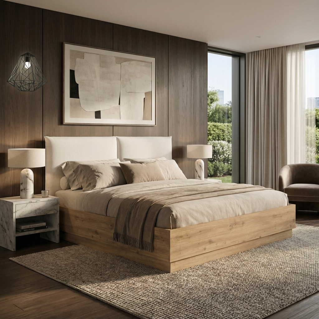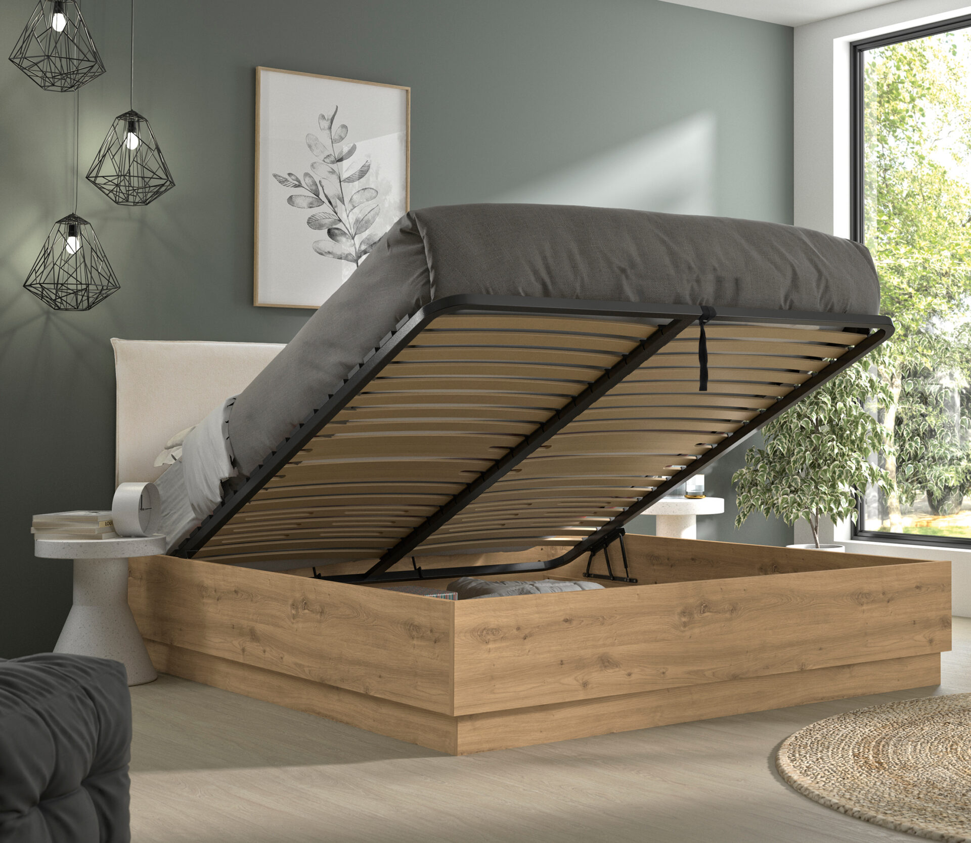 Το κρεβάτι Rivoli συνδυάζει την ομορφιά με την πρακτικότητα. . Με διαστάσεις 165×206εκ. (ύψος 101εκ.) και χρώμα Artisan Oak, το κρεβάτι ενσωματώνει σύγχρονο σχεδιασμό και υψηλή ποιότητα. Το κεφαλάρι είναι επενδεδυμένο με ύφασμα easy clean σε μπεζ χρώμα, προσφέροντας έναν κομψό και εύκολο στη συντήρηση χώρο. Περιλαμβάνει αποθηκευτικό χώρο με μηχανισμό ανύψωσης, επιτρέποντας εύκολη πρόσβαση σε επιπλέον χώρο για τα προσωπικά σας αντικείμενα.