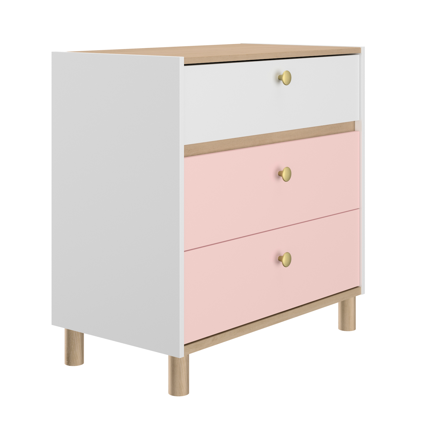 Η συρταριέρα Romy διαθέτει 3 συρτάρια. Οι διαστάσεις της είναι 81×45εκ. ( ύψος 82εκ. ) και το χρώμα της ένας υπέροχος συνδυασμός λευκού , ροζ και blond oak. Η συρταριέρα Romy κατασκευάζεται στη Γαλλία. Συνδυάστε την με τα υπόλοιπα έπιπλα της σειράς Romy.