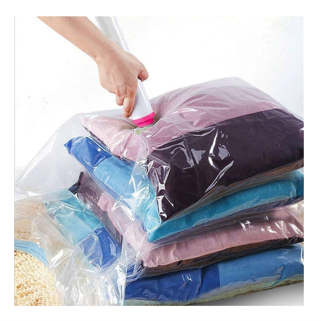 Σακούλα αποθήκευσης με σφράγιση κενού. Ιδανική λύση αποθήκευσης, καθώς βοηθά στην εξοικονόμηση χώρου, ενώ προστατεύει τα πράγματά σας από την υγρασία, τις οσμές και τον σκόρο. Είναι η ιδανική επιλογή για την αποθήκευση ρούχων εκτός εποχής, μπουφάν, παλτών και πολλών άλλων. Διαστάσεις σακούλας 60x80cm. Με την ηλεκτρική σκούπα ρουφάτε τον αέρα και η σακούλα κλείνει αεροστεγώς τα ρούχα σας.