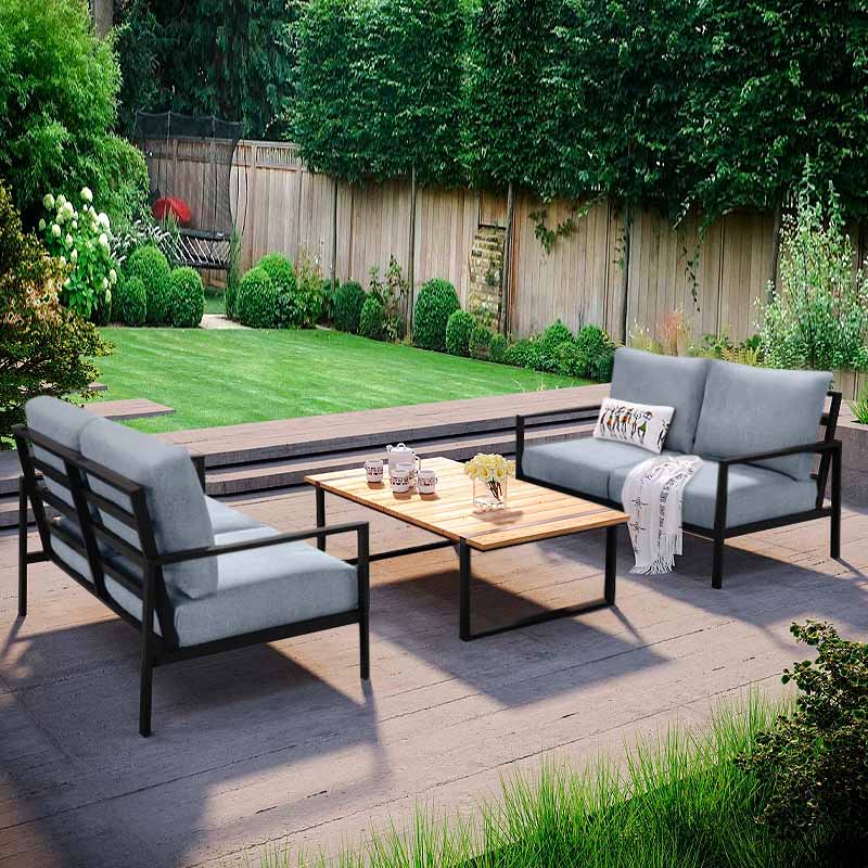 Σαλόνι κήπου Ermis Megapap σετ 3 τμχ μέταλλο – ξύλο χρώμα μαύρο – γκρι