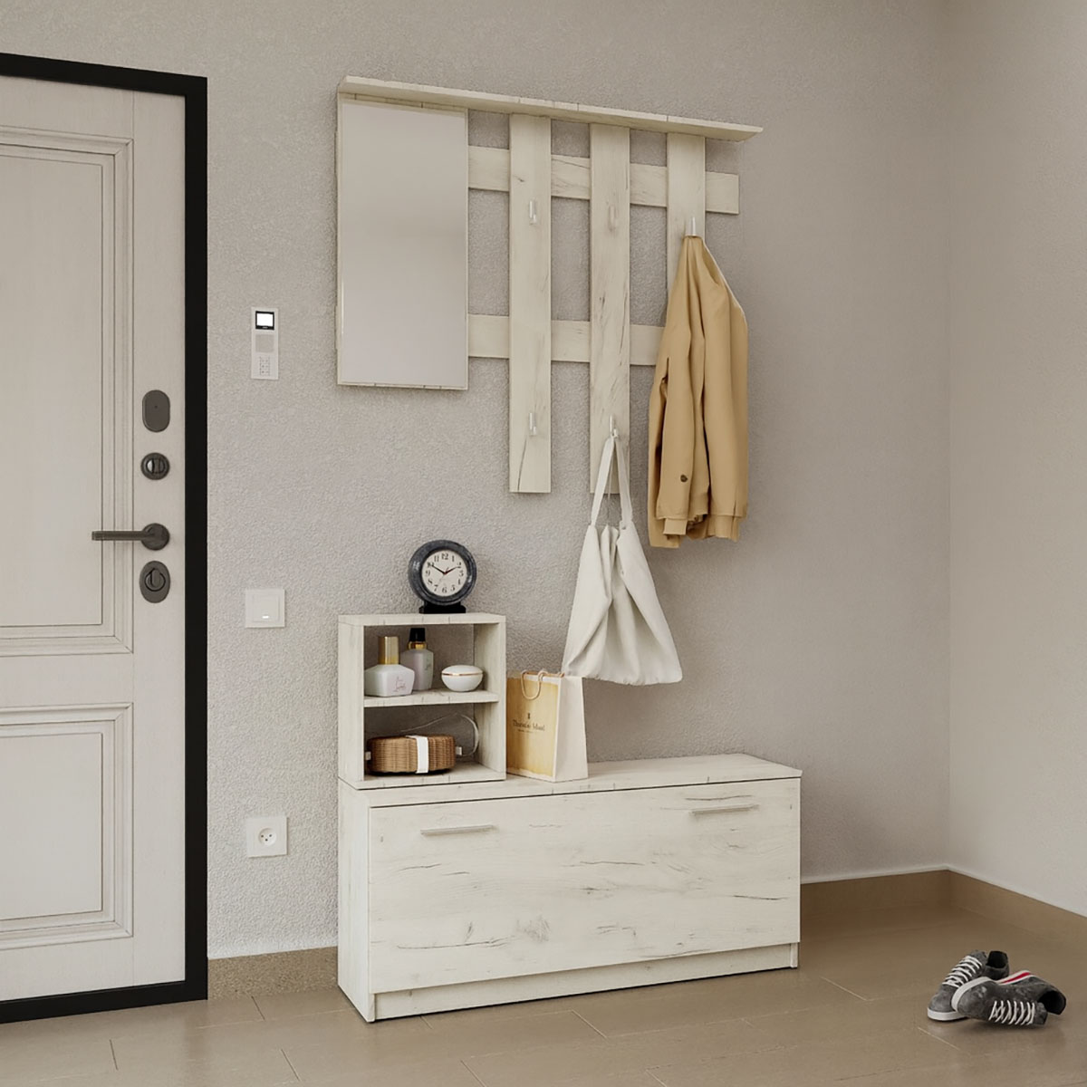 • Μία παπουτσοθήκη, με ένα ράφι εσωτερικά για την τοποθέτηση παπουτσιών