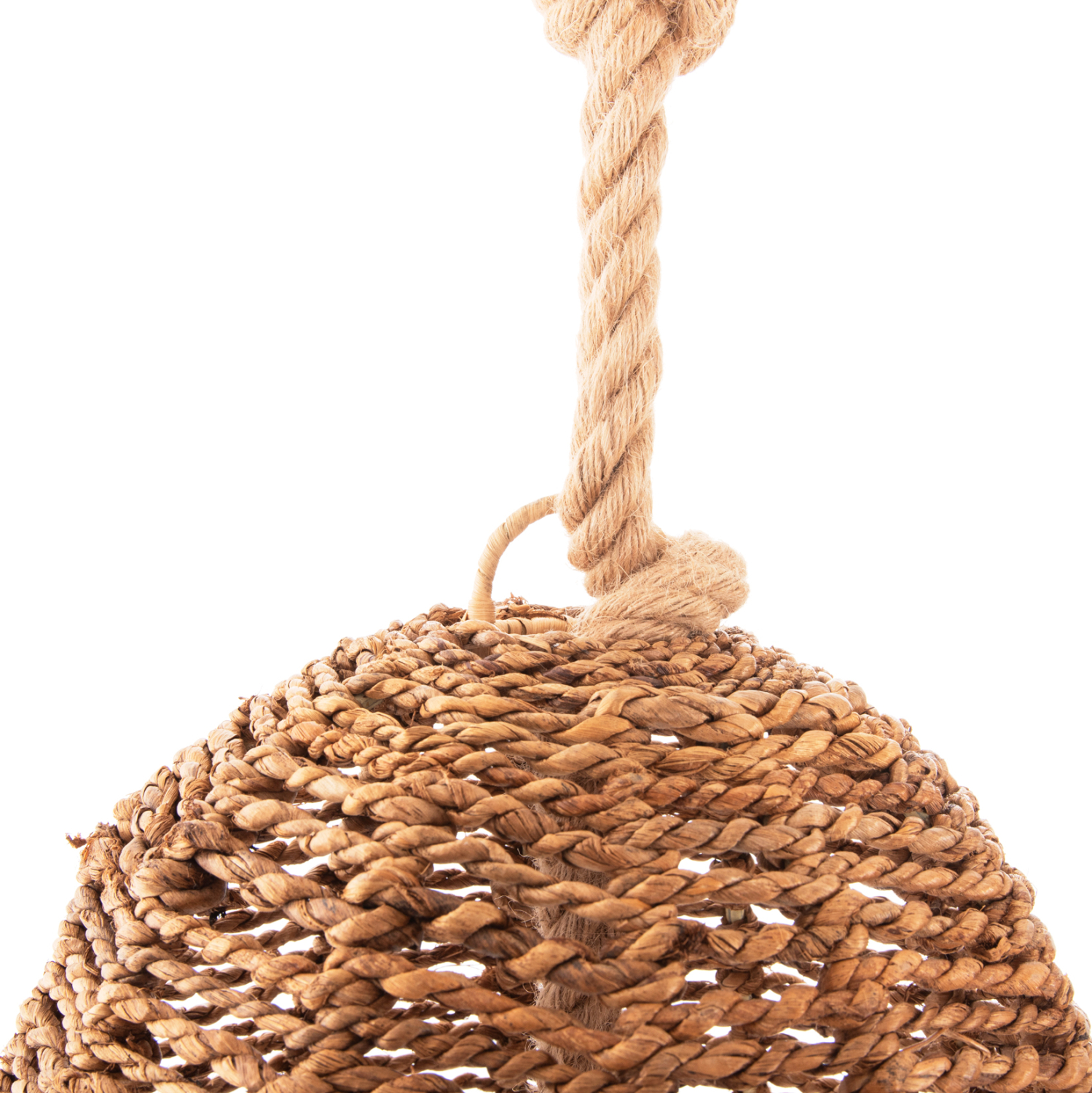 Hm11920- Kρεμαστό φωτιστικό—- Αν επιθυμείτε να διακοσμήσετε το χώρο σας με ένα φωτιστικό σε boho στυλ με εξωτικά υλικά και να το συνδυάσετε με την τελευταία τάση στην διακόσμηση που είναι το σχοινί, αυτό είναι η καλύτερη επιλογή. Είναι ένα μονόφωτο με «καπέλο» σε κωνικό σχήμα φτιαγμένο από ίνες μπανανιάς, σε ΦΥΣΙΚΟ χρώμα.