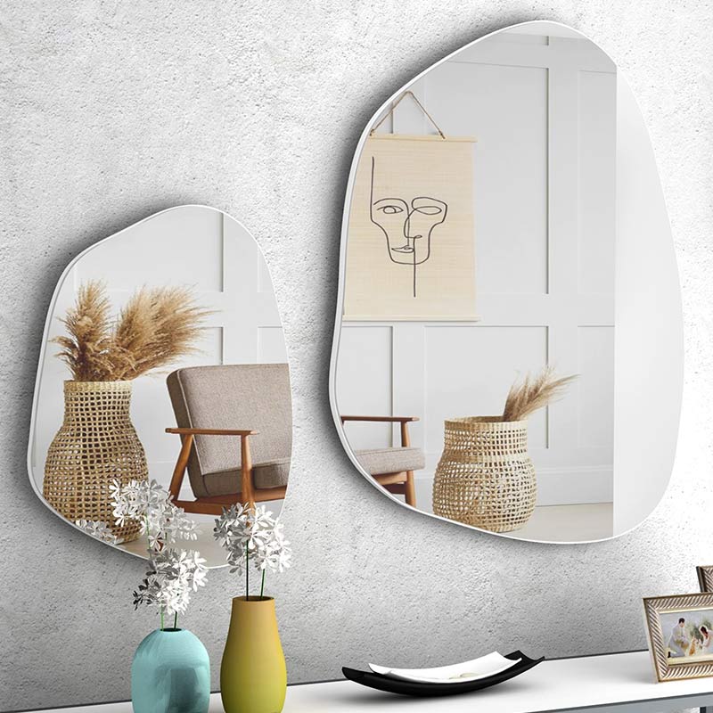 Σετ καθρεφτών τοίχου Denza Megapap 2 τμχ. με μελαμίνη χρώμα λευκό 100x80x2,2εκ.