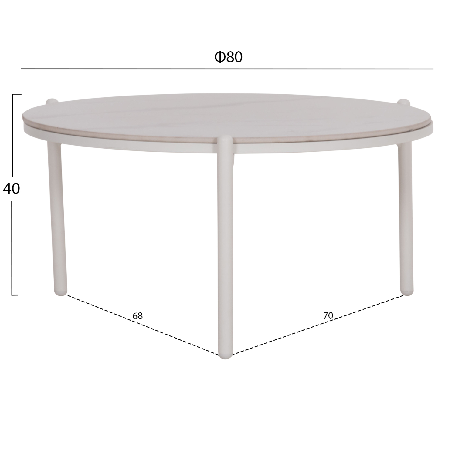 •Τραπεζάκι Α: Φ80 x 40Υ εκ.—-Απόσταση ποδιών: 70×68 εκ.