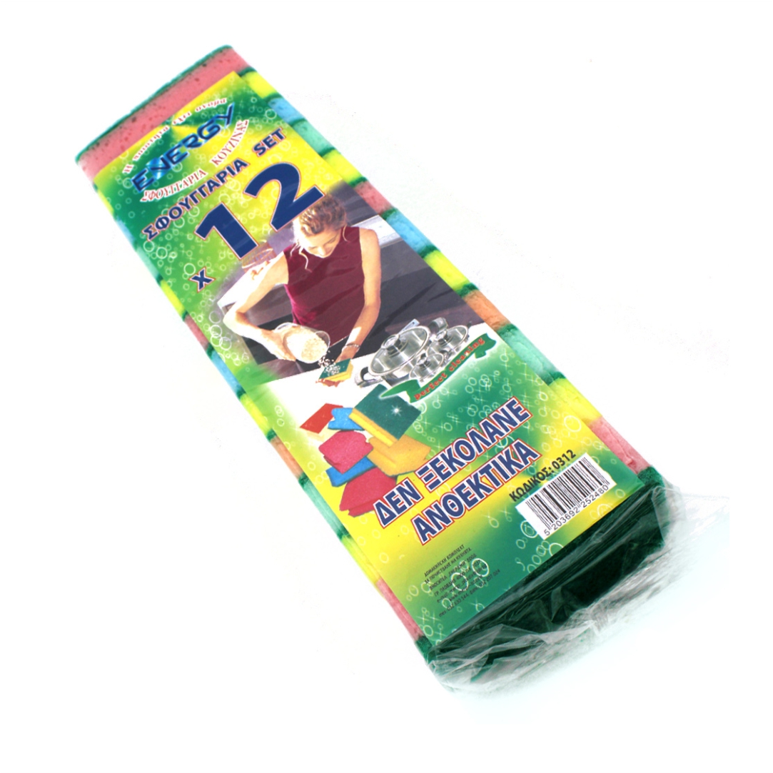 Σετ σφουγγάρια 12 τεμαχίων. Ιδανικά για την κουζίνα σας. Κατάλληλα για το πλύσιμο των πιάτων σας. Δεν ξεκολλάνε είναι ανθεκτικά. Κλασικό χρώμα κίτρινο με πράσινό σύρμα. Διαστάσεις σφουγγαριού 11x6x3cm.