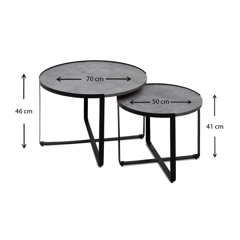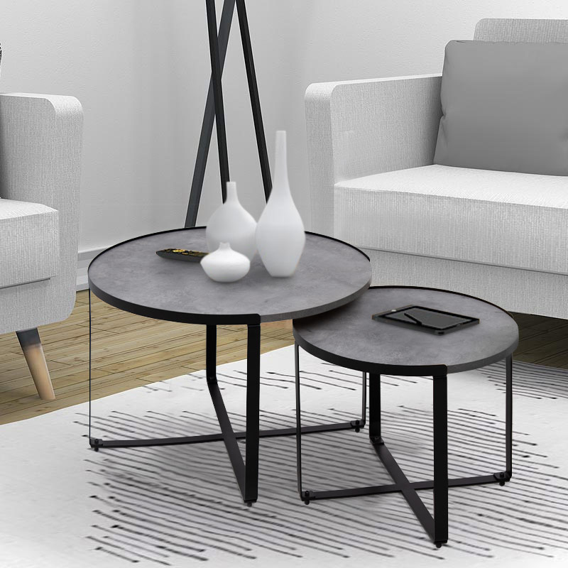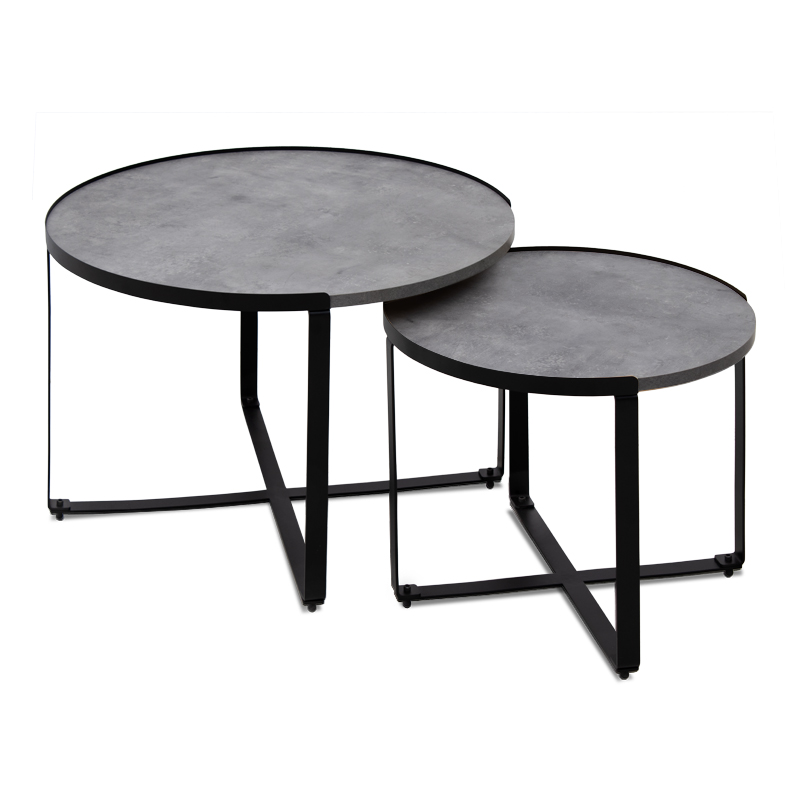 Σετ τραπεζάκια σαλονιού Davis Megapap 2τμχ. μεταλλικά – μελαμίνης χρώμα γκρι σκυροδέματος 70x69x46εκ.