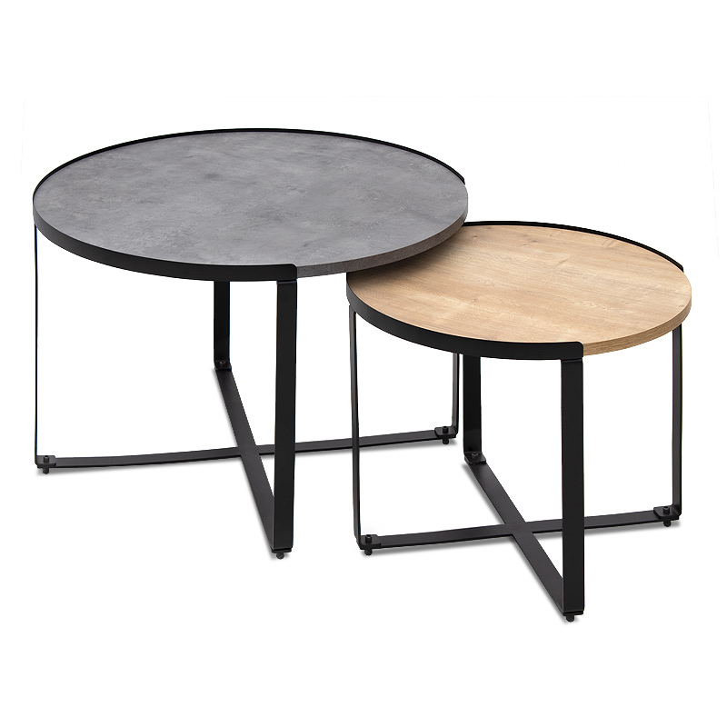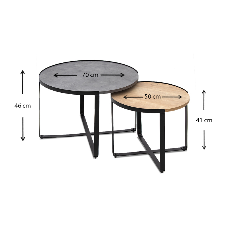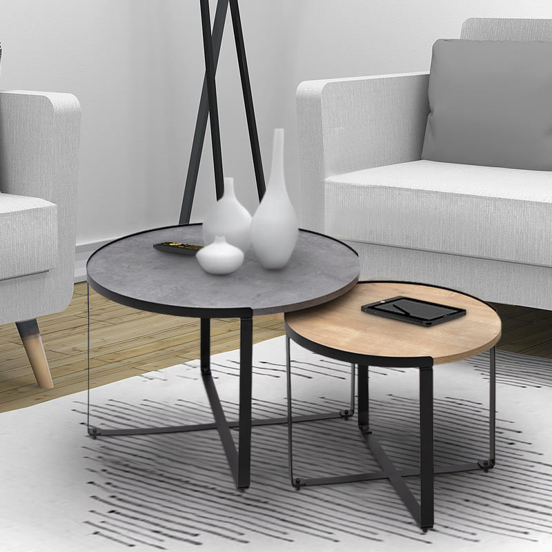 Σετ τραπεζάκια σαλονιού Davis Megapap 2τμχ. μεταλλικά – μελαμίνης γκρι σκυροδέματος/φυσικό οξιάς 70x69x46εκ.