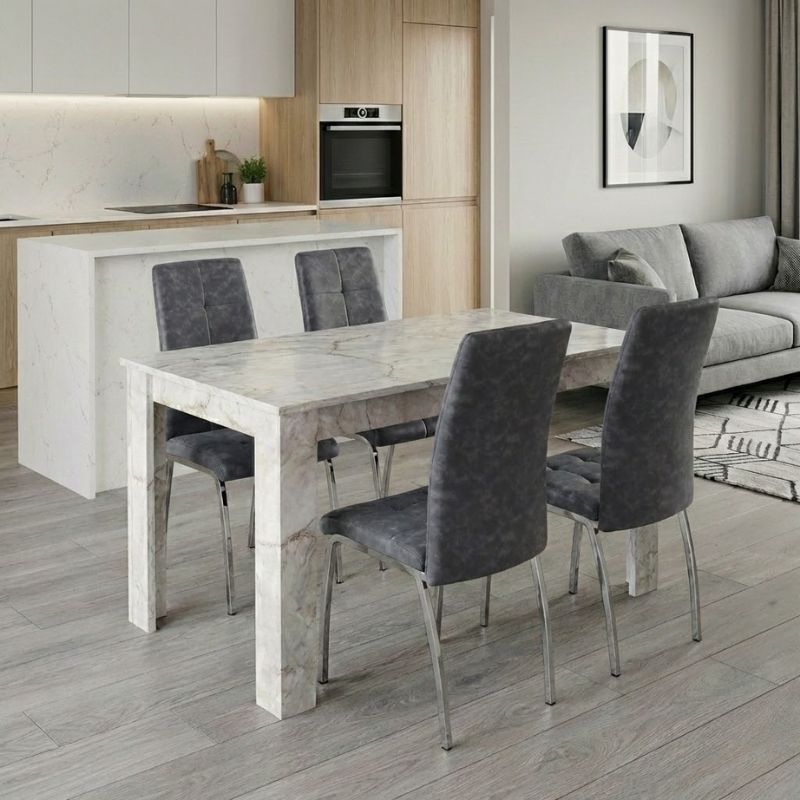 Σετ τραπεζαρία 5τμχ Darlen – Alma Megapap χρώμα λευκό εφέ μαρμάρου – γκρι 125x72x74εκ.