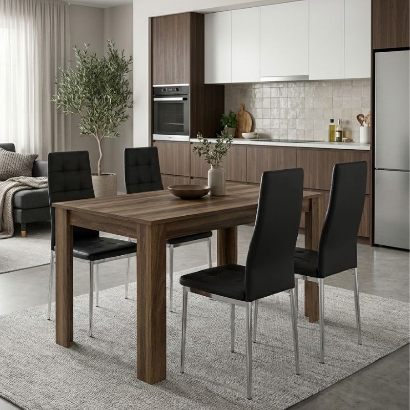 Σετ τραπεζαρία 5τμχ Darlen – Rosa Megapap χρώμα καρυδί – μαύρο/χρωμίου πόδι 125x72x74εκ.