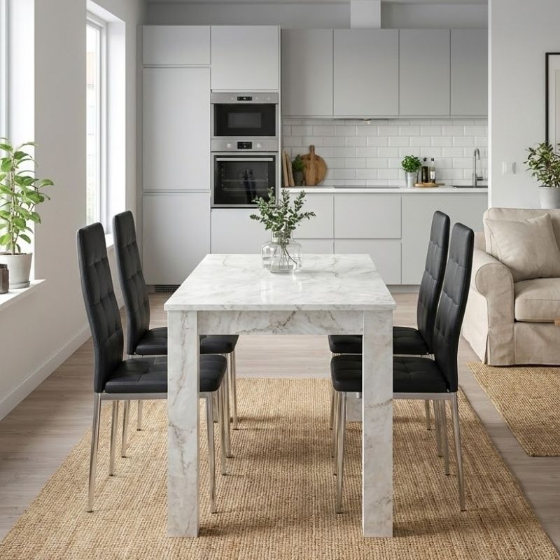 Σετ τραπεζαρία 5τμχ Darlen – Rosa Megapap χρώμα λευκό εφέ μαρμάρου – μαύρο/χρωμίου πόδι 125x72x74εκ.