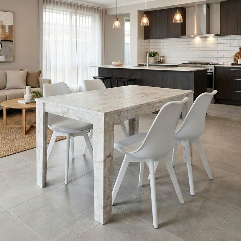 Σετ τραπεζαρία 5τμχ Darlen – Viva Megapap χρώμα λευκό εφέ μαρμάρου – λευκό 125x72x74εκ.