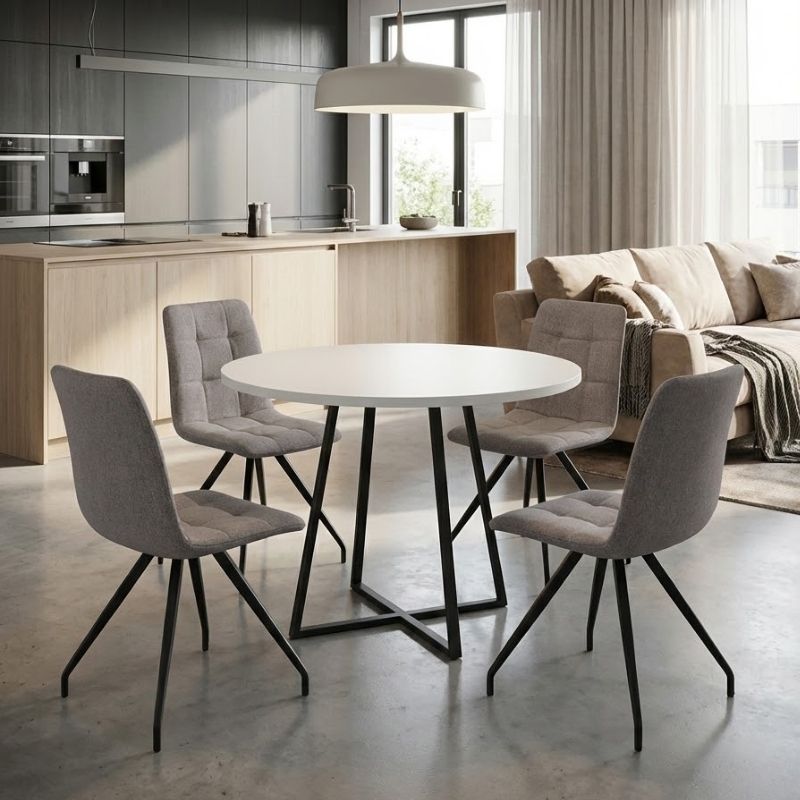 Η τραπεζαρία Rubes – Bianca θα προσθέσει μοντέρνα κομψότητα και άνεση σε κάθε χώρο. Το απαλό ύφασμα της καρέκλας προσφέρει αισθητική άνεσης, ενώ τα στιβαρά, μαύρα μεταλλικά πόδια προσδίδουν μοντέρνα και σταθερή δομή. Είναι ιδανική για την τραπεζαρία ενός μοντέρνου σπιτιού, αλλά και για επαγγελματικούς χώρους όπως καφέ, εστιατόρια ή AirBnB – όπου η λεπτομέρεια και η αισθητική κάνουν τη διαφορά.