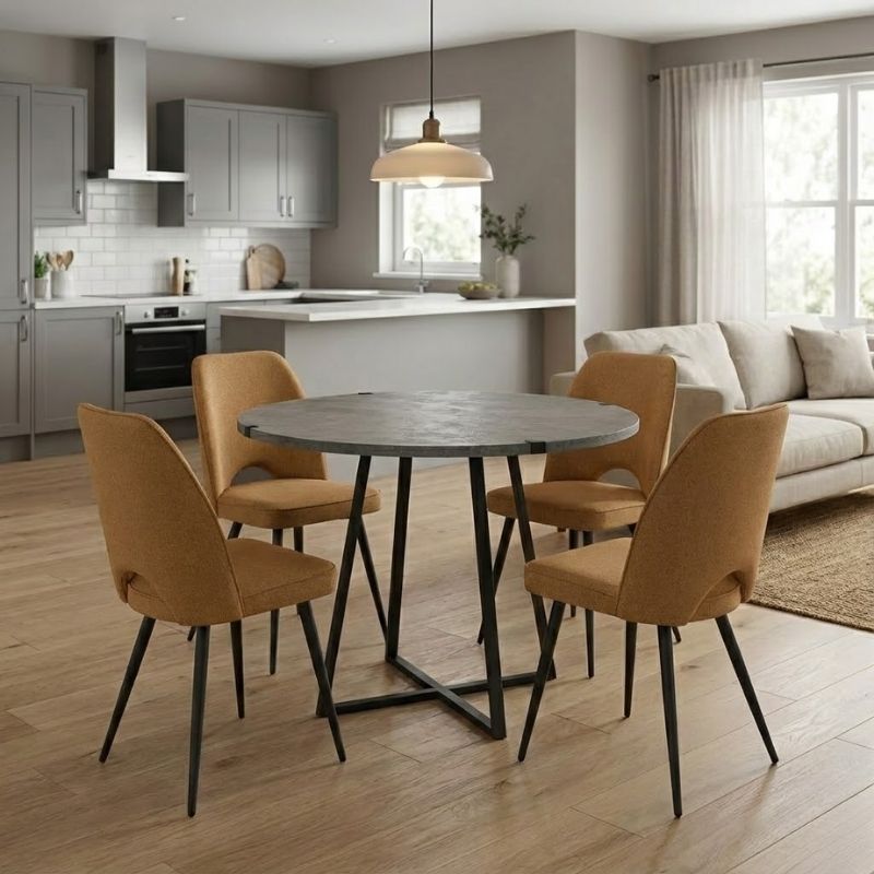 Σετ τραπεζαρία 5τμχ Rubes – Christy Megapap χρώμα γκρι σκυροδέματος – μουσταρδί Ø100×78εκ.