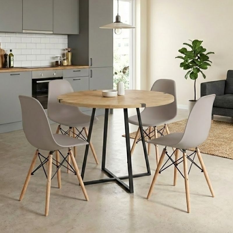 Σετ τραπεζαρία 5τμχ Rubes - Nova Megapap χρώμα φυσικό οξιάς - cappuccino Ø100x78εκ. Σετ τραπεζαρία 5τμχ Rubes &#82...