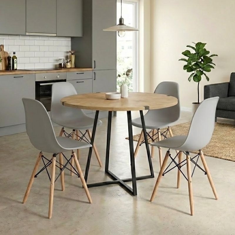 Σετ τραπεζαρία 5τμχ Rubes – Nova Megapap χρώμα φυσικό οξιάς – γκρι Ø100x78εκ.