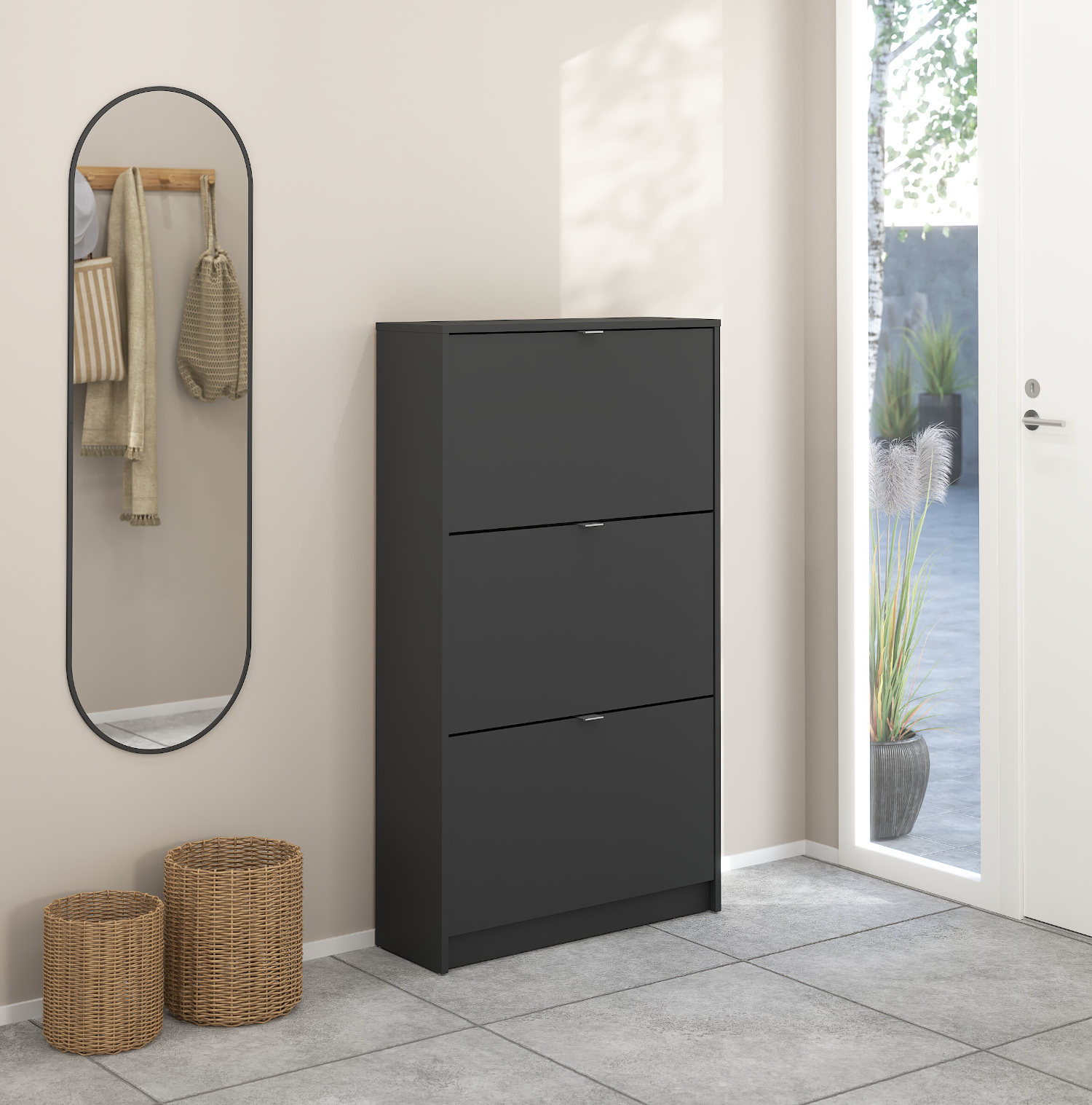 Η παπουτσοθήκη Shoes με το μινιμαλιστικό της σχέδιο θα ταιριάξει σε οποιοδήποτε χώρο. Οι διαστάσεις της είναι 70,3×24εκ. ( ύψος 123,6εκ. ) . Η παπουτσοθήκη Shoes χωράει έως και 18 ζευγάρια παπούτσια. Το χρώμα της είναι γκρι.