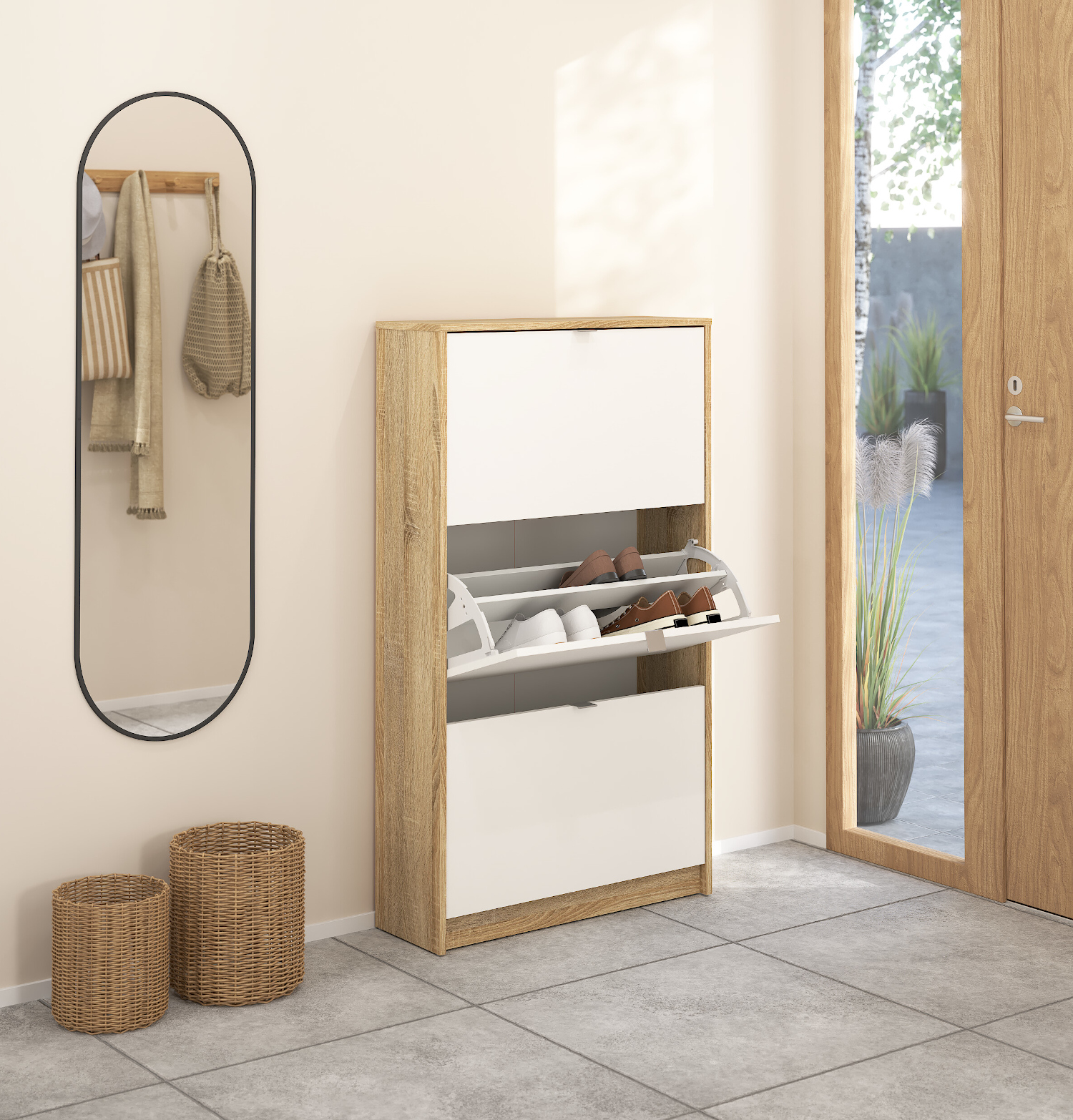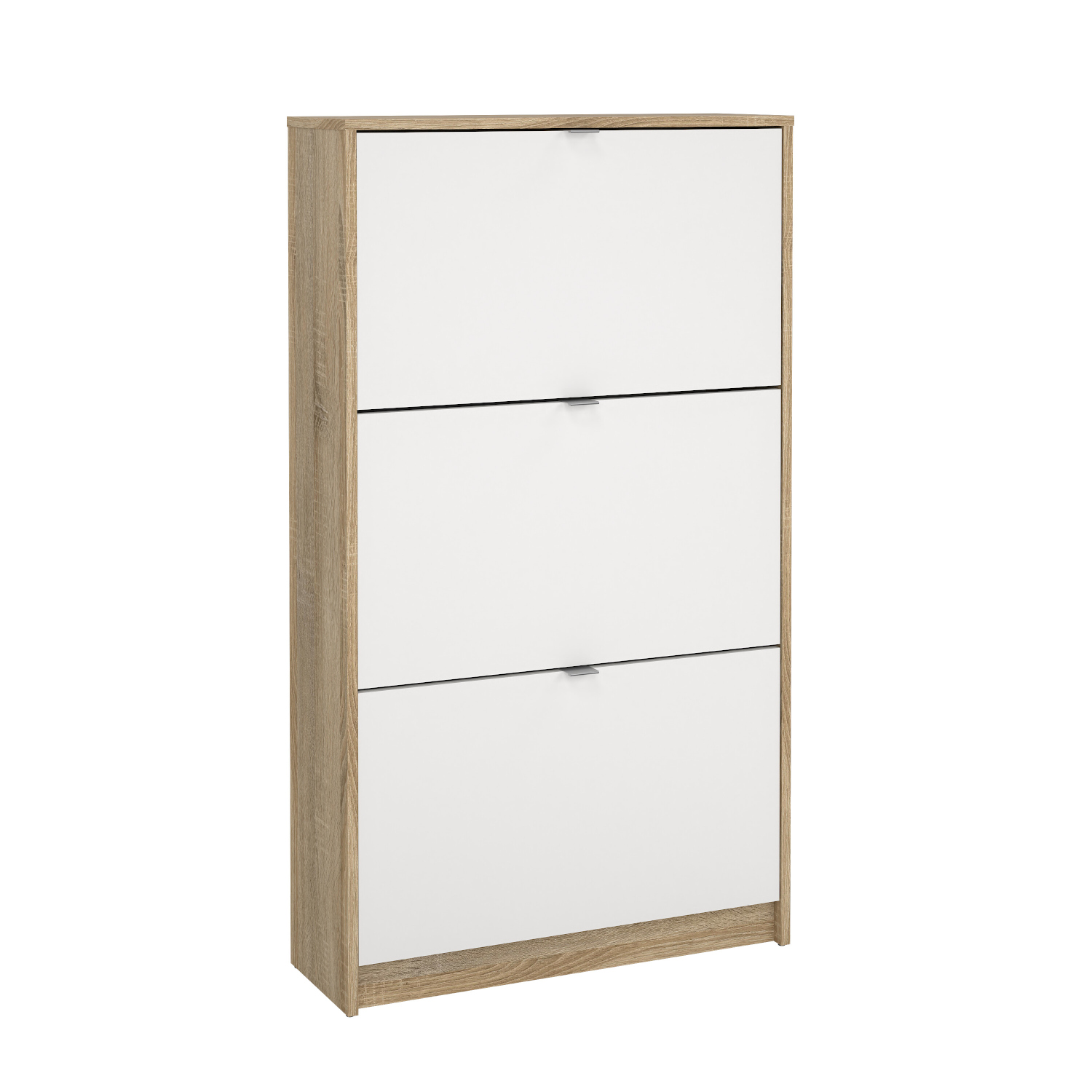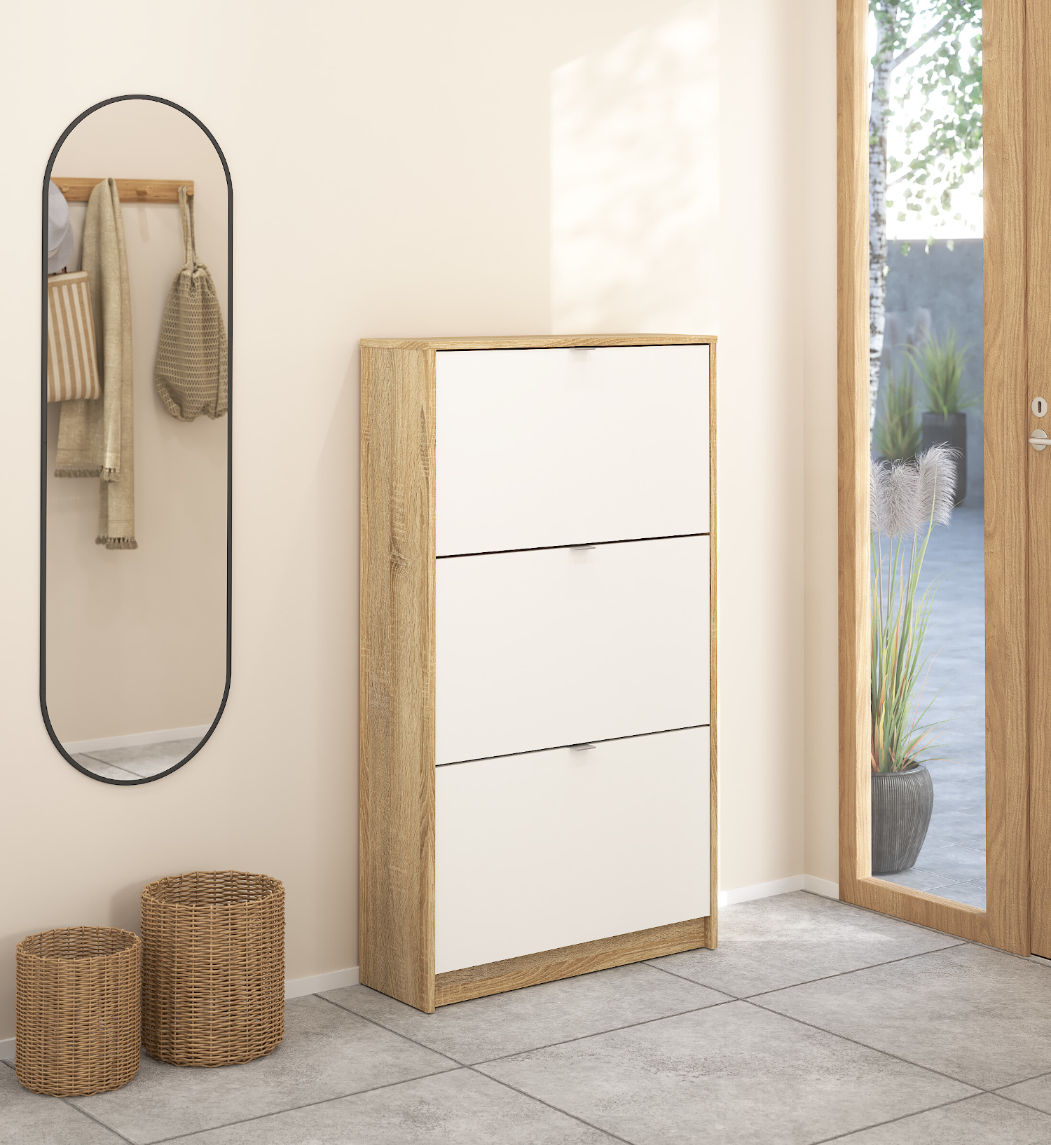 Η παπουτσοθήκη Shoes με το μινιμαλιστικό της σχέδιο θα ταιριάξει σε οποιοδήποτε χώρο. Οι διαστάσεις της είναι 70,3×24εκ. ( ύψος 123,6εκ. ) . Η παπουτσοθήκη Shoes χωράει έως και 18 ζευγάρια παπούτσια. Το χρώμα της είναι ένας υπέροχος συνδυασμός λευκού με δρυς.