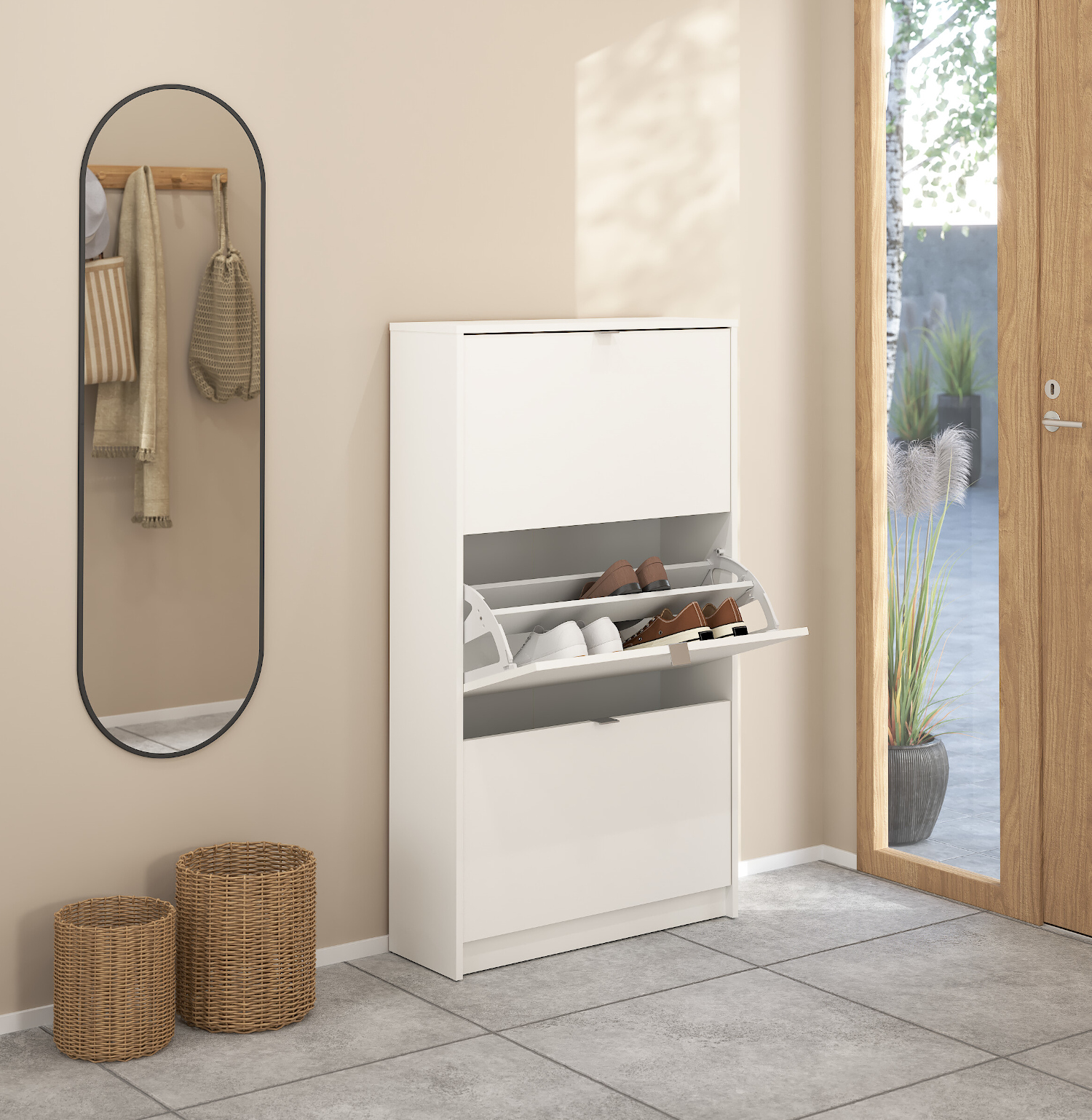Η παπουτσοθήκη Shoes είναι με το μινιμαλιστικό της σχέδιο θα ταιριάξει σε οποιοδήποτε χώρο. Οι διαστάσεις της είναι 70,3×24εκ. ( ύψος 123,6εκ. ) . Η παπουτσοθήκη Shoes χωράει έως και 18 ζευγάρια παπούτσια. Το χρώμα της είναι Λευκό.