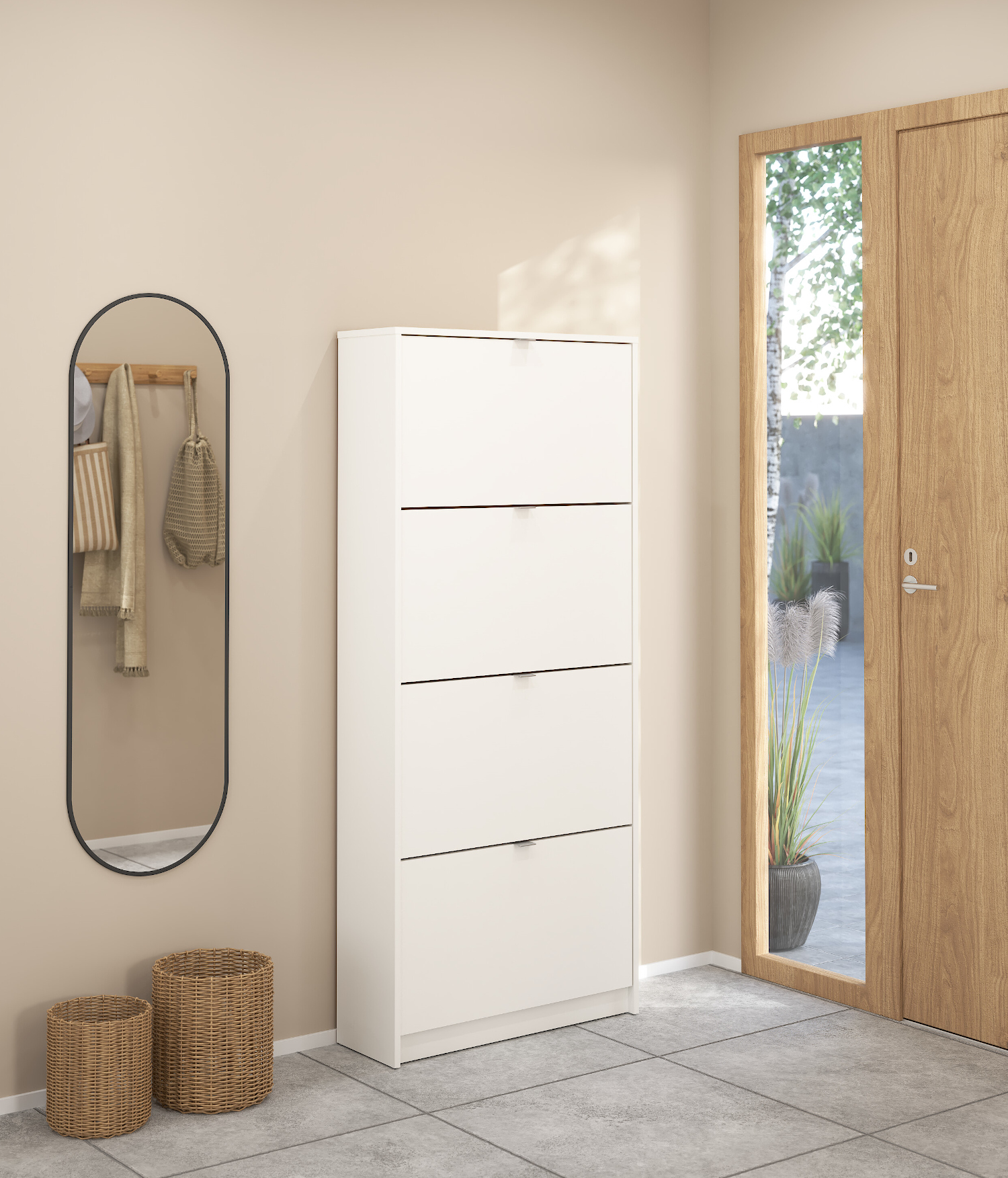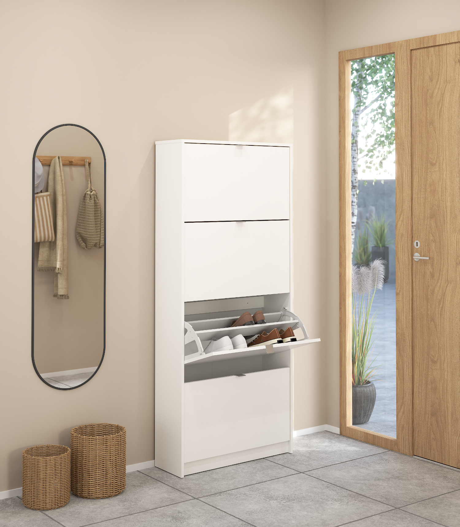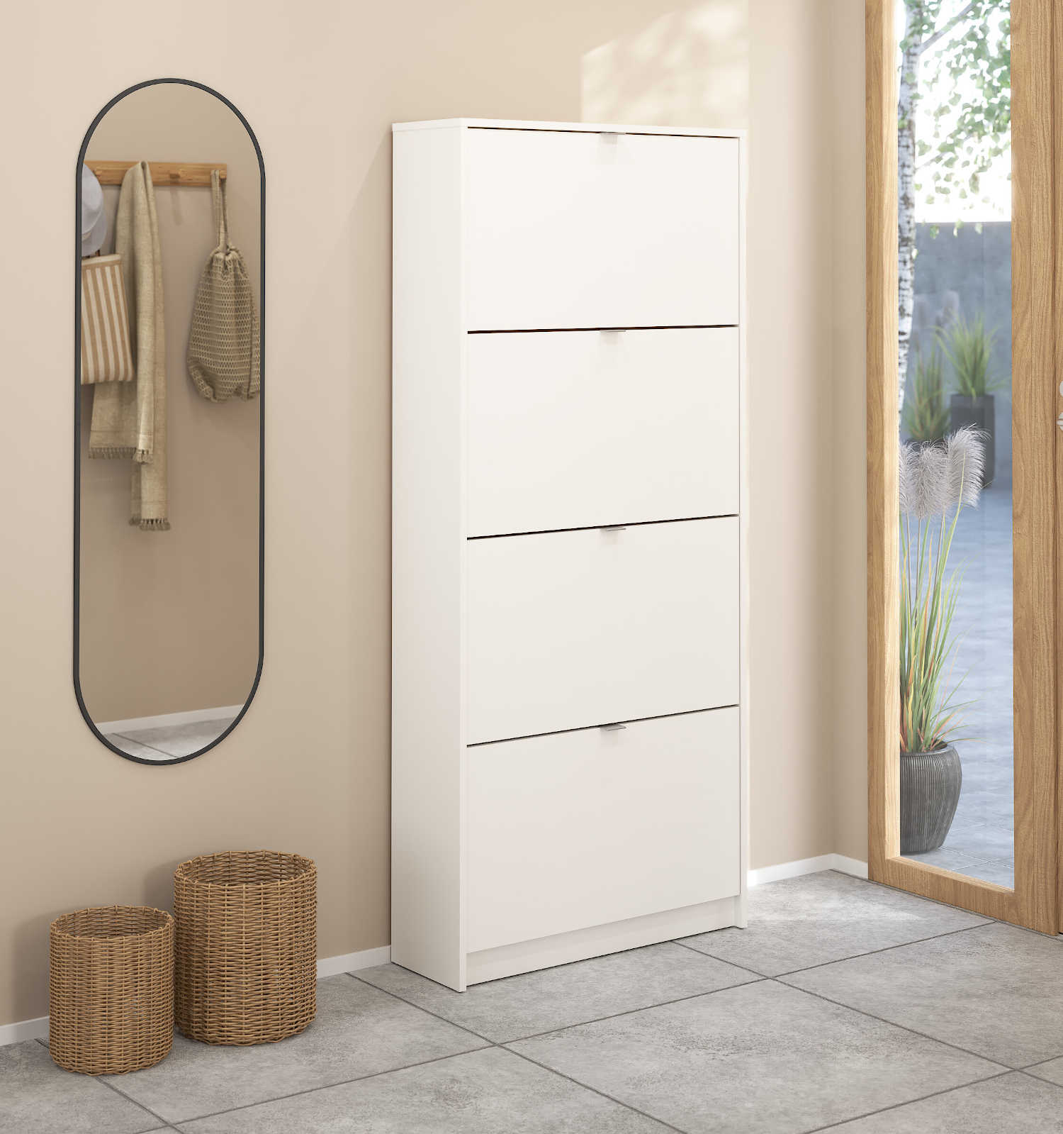 Η παπουτσοθήκη Shoes με το μινιμαλιστικό της σχέδιο θα ταιριάξει σε οποιοδήποτε χώρο. Οι διαστάσεις της είναι 70,3×24εκ. ( ύψος 162εκ. ) . Η παπουτσοθήκη Shoes χωράει έως και 24 ζευγάρια παπούτσια. Το χρώμα της είναι Λευκό.