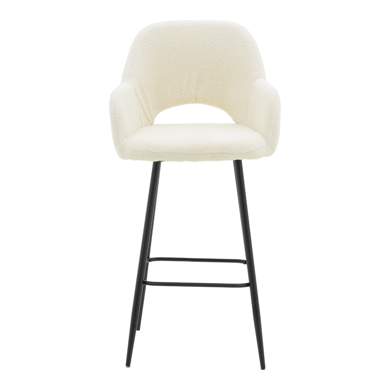 * Πλάτη και έδρα ενιαία, κατασκευασμένες από ενισχυμένο μεταλλικό σκελετό και επενδυμένες με μπουκλέ ύφασμα υψηλής ποιότητας και αντοχής