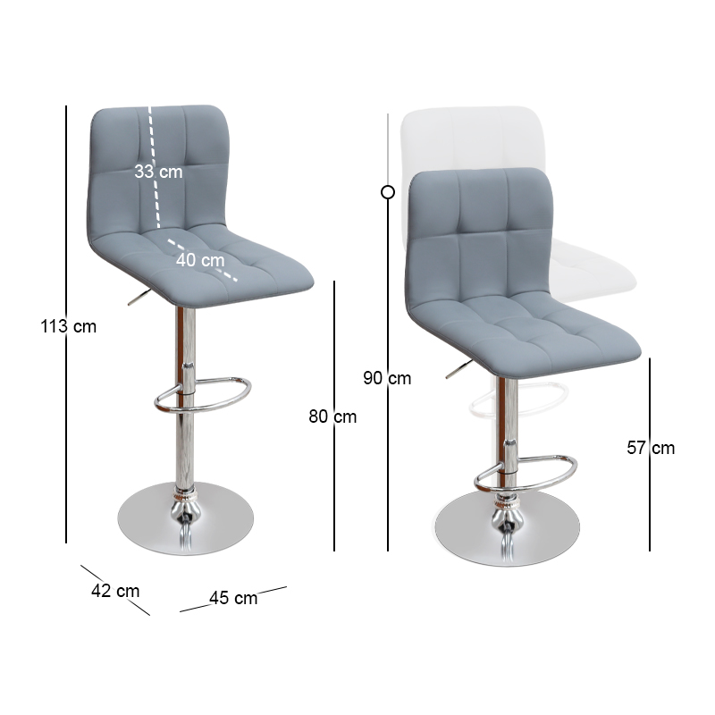 Σκαμπό μπαρ Carmelo Megapap με ρυθμιζόμενο ύψος από τεχνόδερμα χρώμα γκρι – βάση χρωμίου 45x42x90/113εκ.