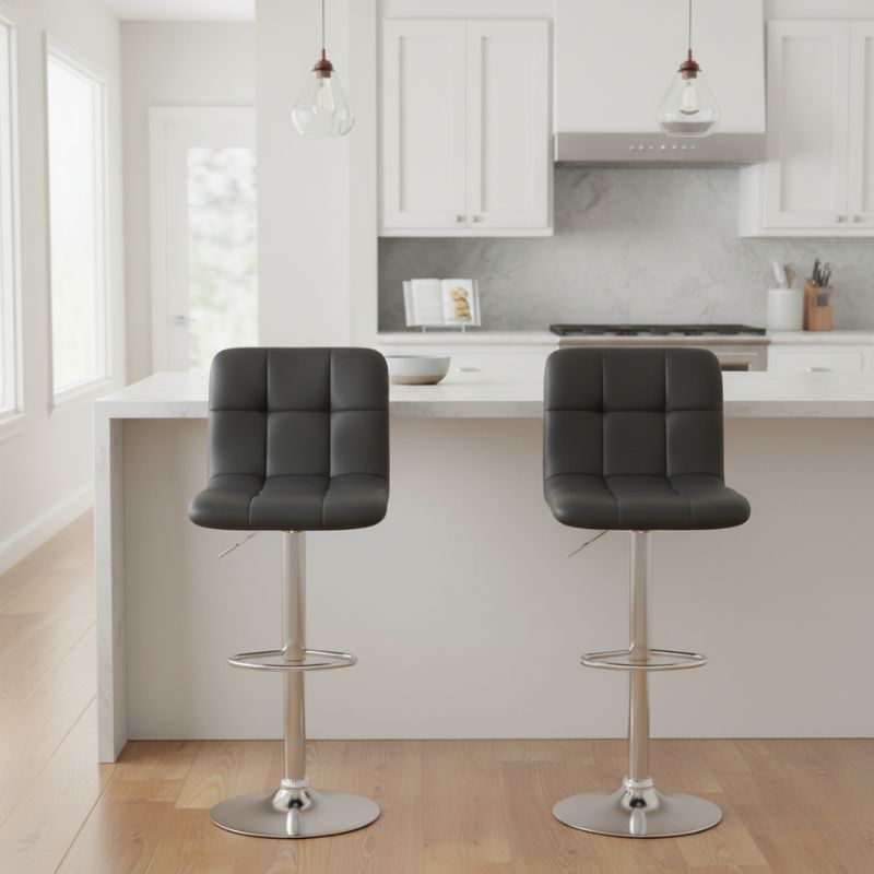 Σκαμπό μπαρ Carmelo Megapap με ρυθμιζόμενο ύψος από τεχνόδερμα χρώμα μαύρο – βάση χρωμίου 45x42x90/113εκ.