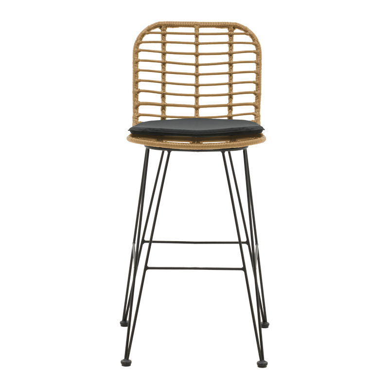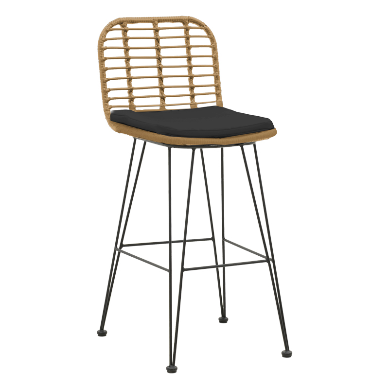 Σκαμπό μπαρ κήπου Naoki pakoworld με μαξιλάρι pe φυσικό-μέταλλο μαύρο πόδι 46x56x110εκ