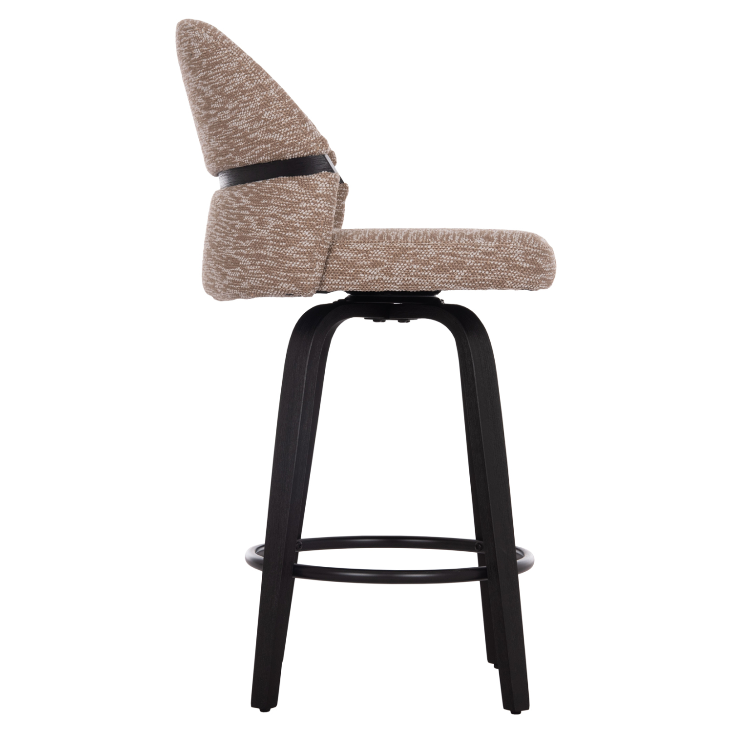 Το περιστρεφόμενο σκαμπό μπαρ μεσαίου ύψους DEKKER αποτελεί μια νέα πρόταση για τον επαγγελματικό σας χώρο. Ο σκελετός είναι από plywood σε ΜΑΥΡΟ χρώμα, ενώ το κάθισμα και η πλάτη είναι επενδυμένα με υπέροχο ανάγλυφο ύφασμα σε ΚΑΦΕ χρώμα. Στο κάτω μέρος των ποδιών υπάρχουν ρεγουλατόροι για ρύθμιση της σταθερότητας του σκαμπό, ενώ διαθέτει και υποπόδιο.