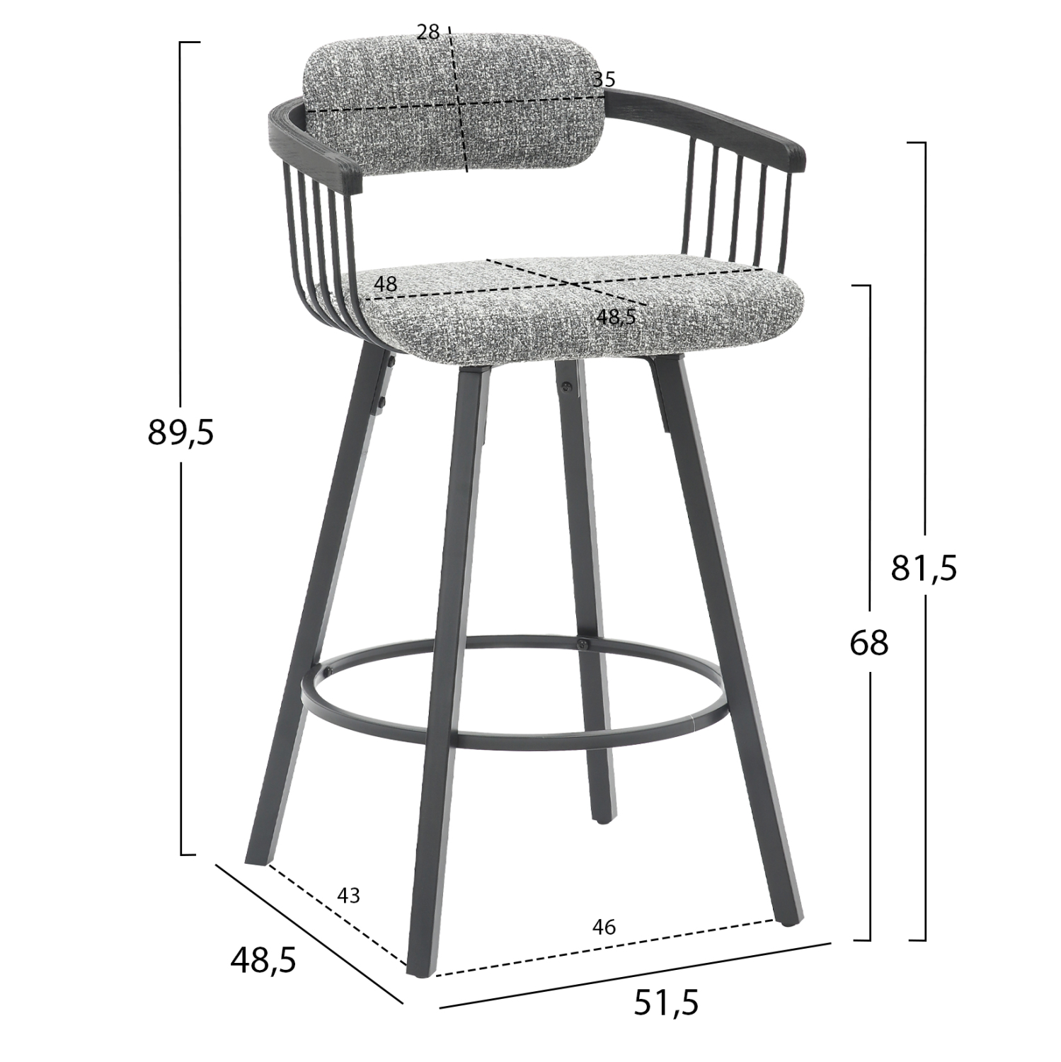 Το LANG είναι ένα σκαμπό μεσαίου ύψους για μπαρ, με ημικυκλική πλάτη. Όλος ο σκελετός είναι μεταλλικός σε ΜΑΥΡΟ χρώμα ενώ το κάθισμα και η μίνιμαλ πλάτη είναι επενδυμένα με ποιοτικό ΓΚΡΙ ύφασμα. Ωστόσο, αυτό που ξεχωρίζει είναι ότι το κάθισμα είναι ΠΕΡΙΣΤΡΕΦΟΜΕΝΟ απογειώνοντας την πρακτικότητά του!