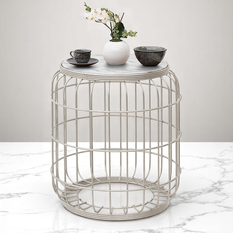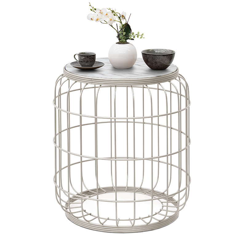 Σκαμπώ – τραπεζάκι βοηθητικό Muller Megapap μεταλλικό – Mdf χρώμα λευκό 35x35x47εκ.