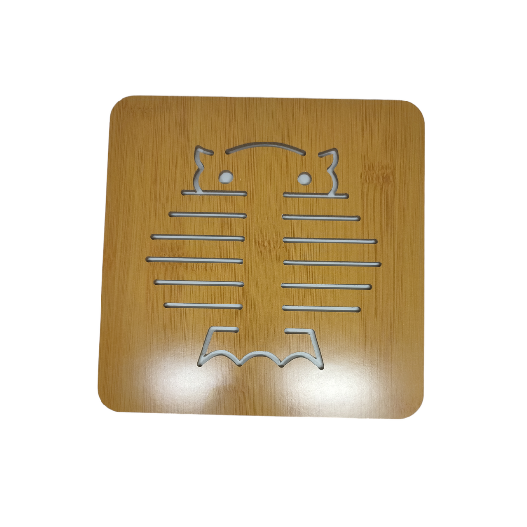 Σουπλά. Προστατεύει επιφάνειες, όπως το τραπέζι ή ο πάγκος της κουζίνας, από σημάδια νερού, λεκέδες φαγητού ή ζημιές που είναι πιθανό να προκληθούν λόγω θερμότητας. Τοποθετείται κάτω από το πιάτο ή το μαγειρικό σκεύος. Είναι ανθεκτικό, με αντοχή στην υψηλή θερμοκρασία και μεγάλη διάρκεια ζωής. Διαστάσεις 19x19cm.