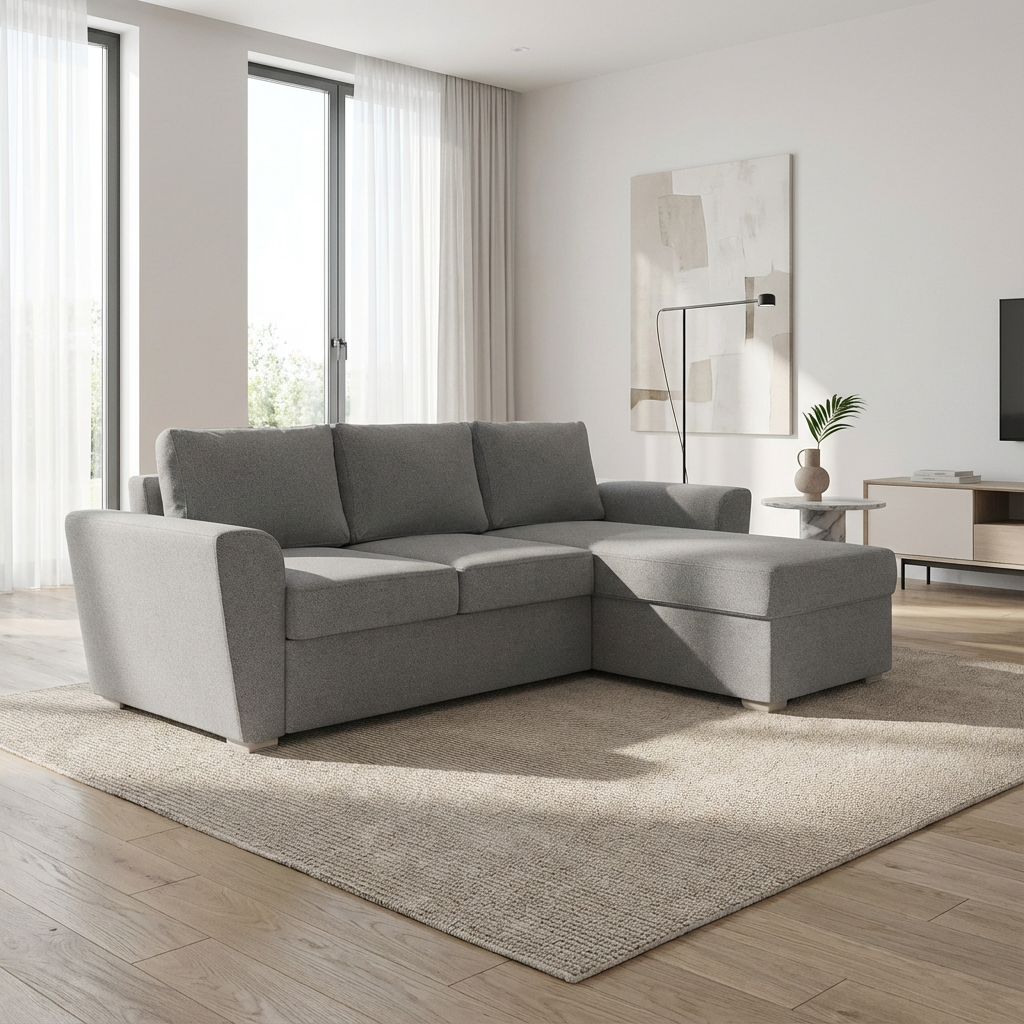 Ο καναπές γωνία Stanford έχει διαστάσεις 242×160εκ. H γωνία του καναπέ Stanford είναι αναστρέψιμη. Ο γωνιακός καναπές Stanfrod μετρέπεται εύκολα σε διπλό κρεβάτι διαστάσεων 140×200εκ. και διαθέτει αποθηκευτικό χώρο στο ανάκλινδρο. Ο καναπές είναι επενδεδυμένος με ύφασμα σε χρώμα γκρι ανοιχτό και στο κάθισμα έχει zig-zag springs για μεγαλύτερη άνεση.