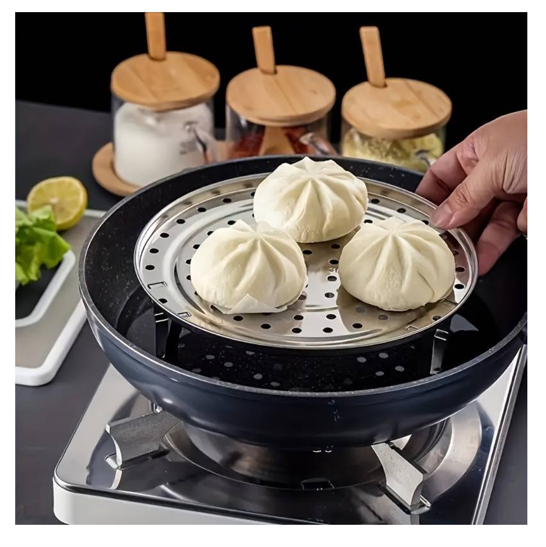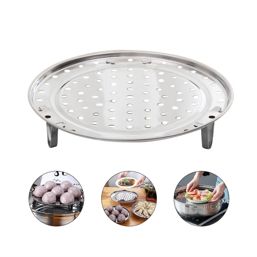 Στρογγυλή σχάρα ατμού. Ιδανική για να τοποθετείτε πάνω τα φαγητά σας. Κατάλληλη και για μαγείρεμα. Διαστάσεις 26x26cm.