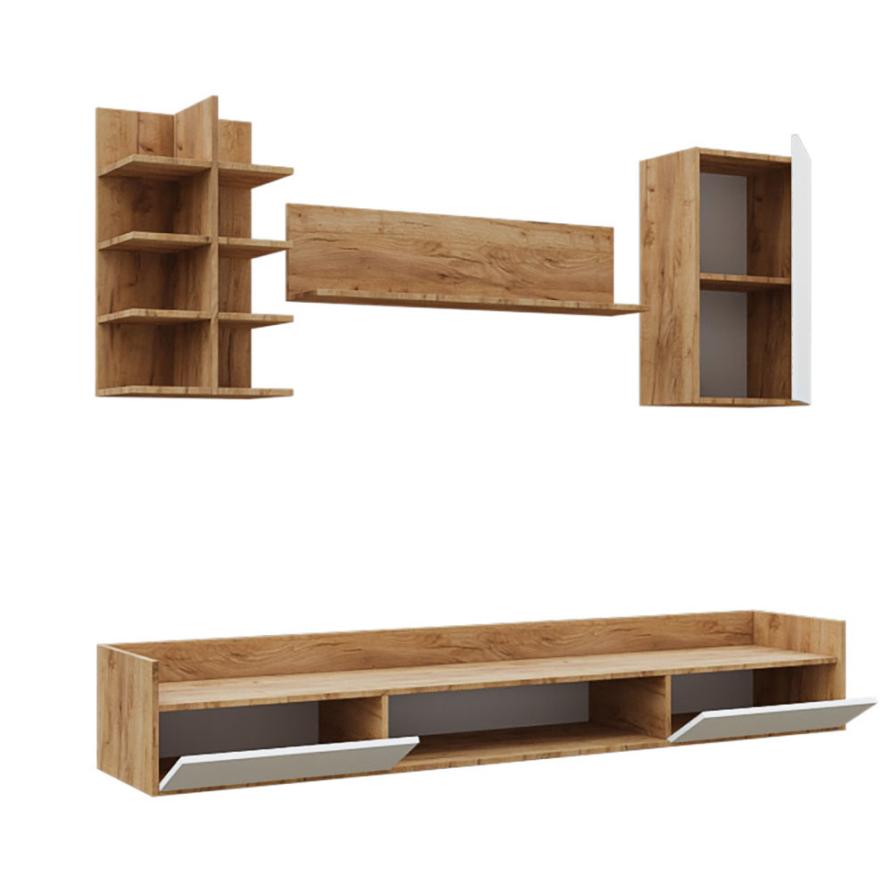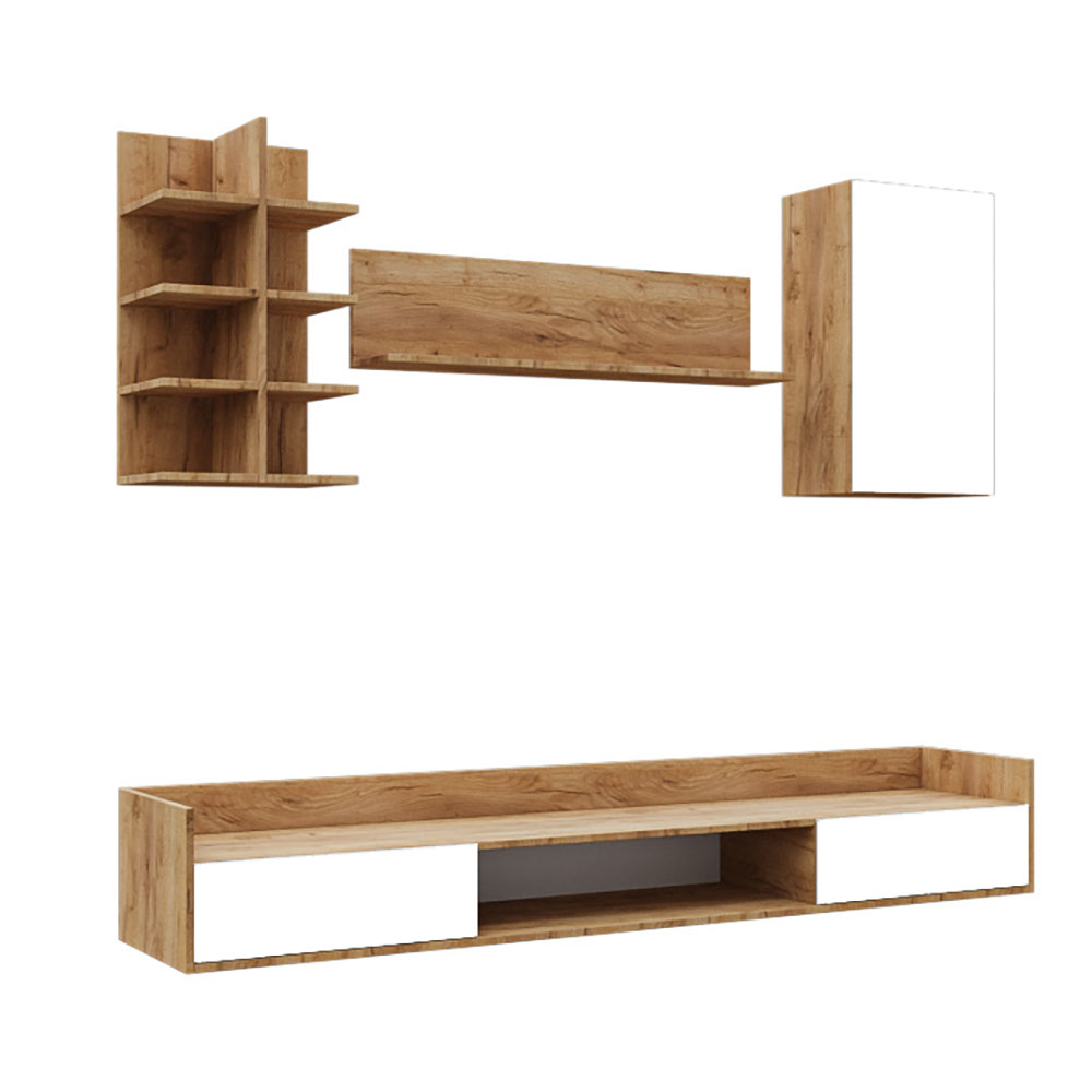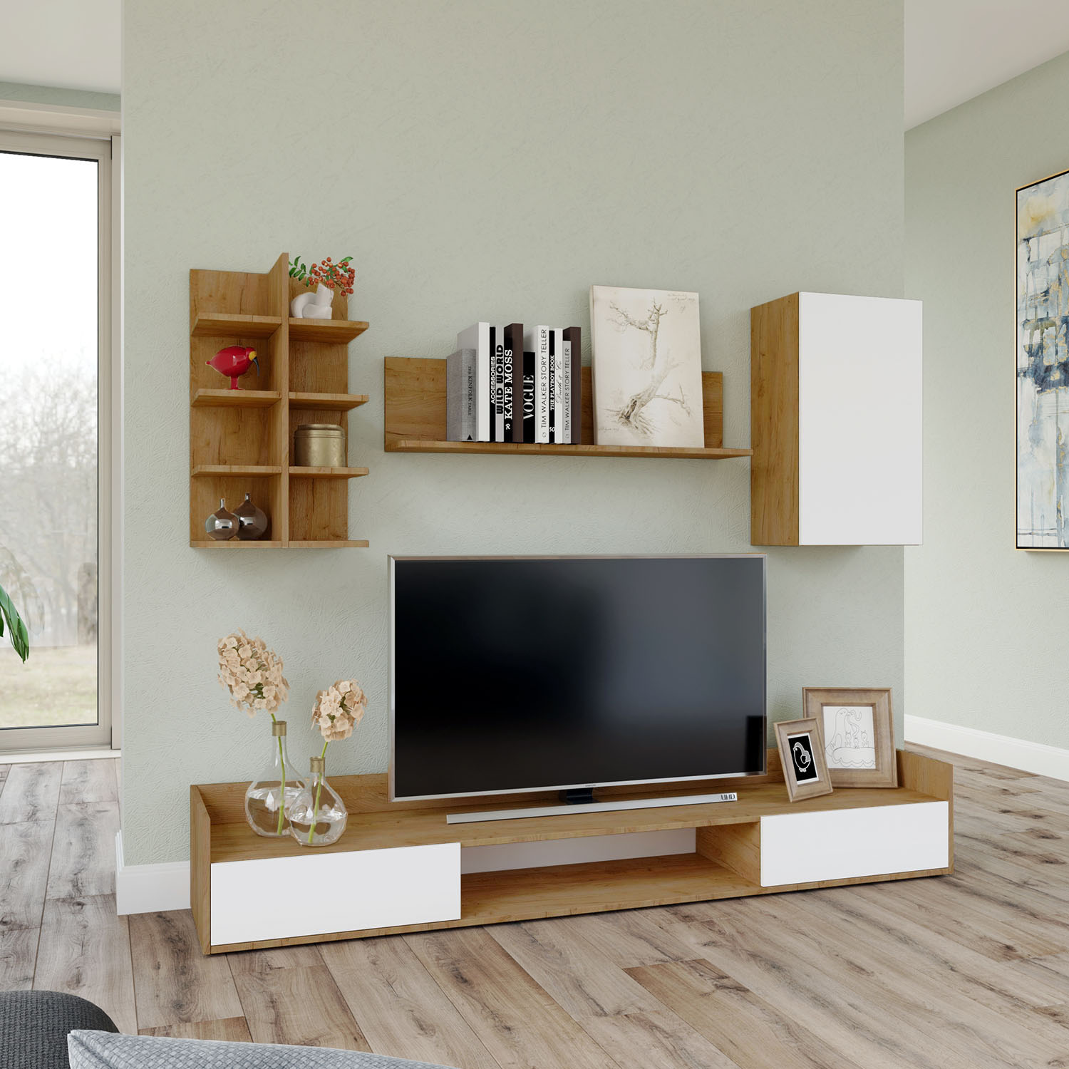 Σύνθεση Τηλεόρασης Callisto, εξαιρετικής ποιότητας και υψηλής αντοχής, με ιδιαίτερο συνδυασμό χρωμάτων, χρυσό δρυς και λευκό.