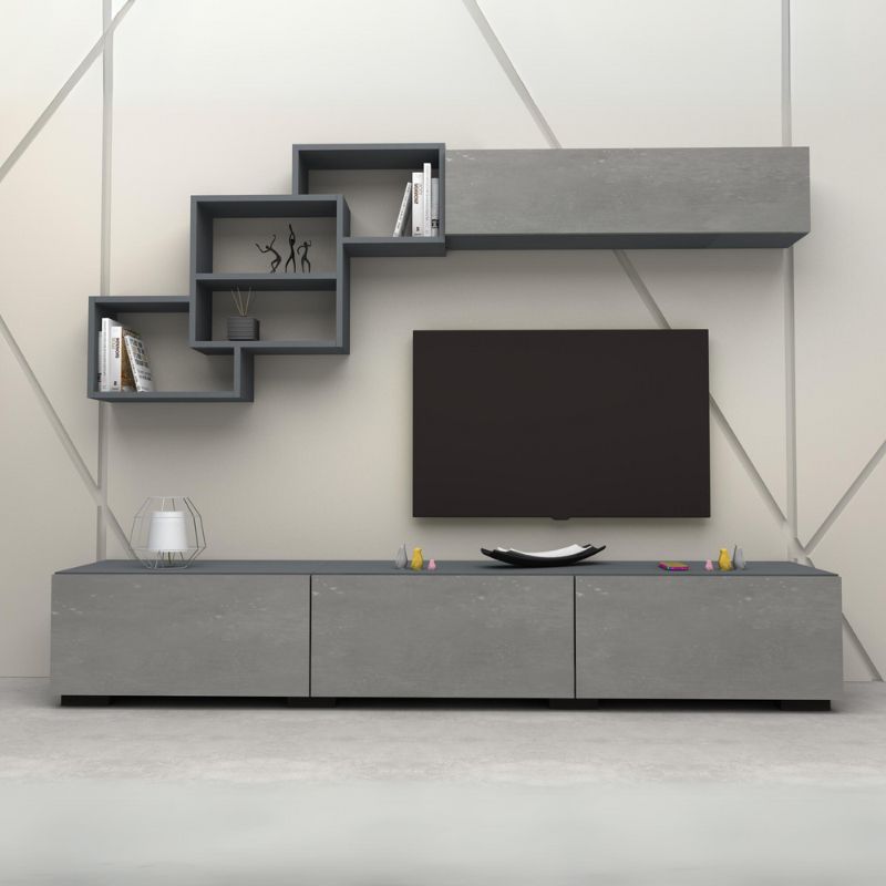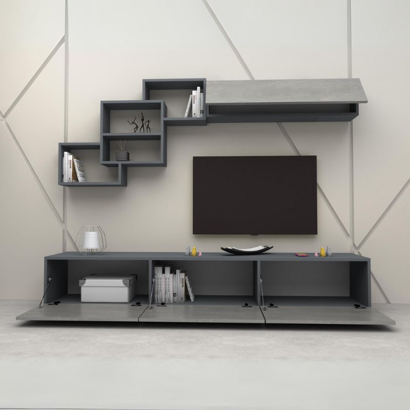 Σύνθεση τηλεόρασης Free Megapap από μελαμίνη χρώμα ανθρακί – γκρι σκυροδέματος 210x35x38εκ.