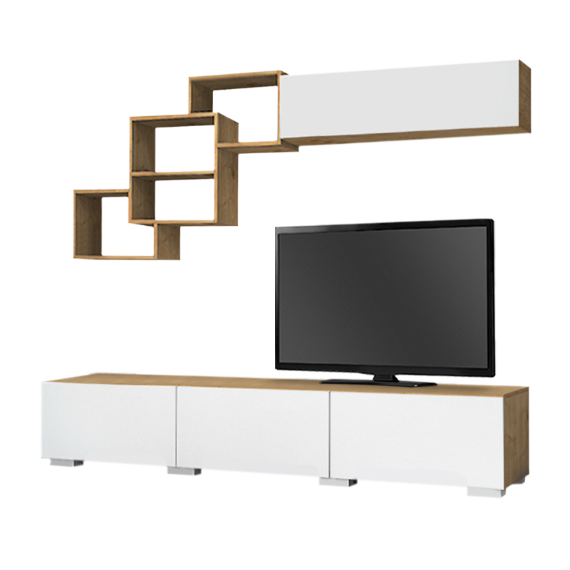 • Η σύνθεση αποτελείται από ένα έπιπλο τηλεόρασης, μία ραφιέρα τοίχου και ένα οριζόντιο μονόφυλλο ντουλάπι.