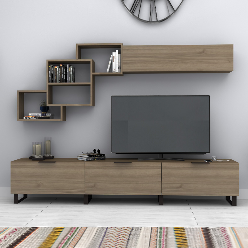 Σύνθεση τηλεόρασης Heydar Megapap χρώμα καρυδί 210x35x40εκ.