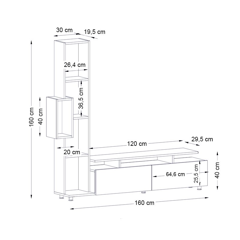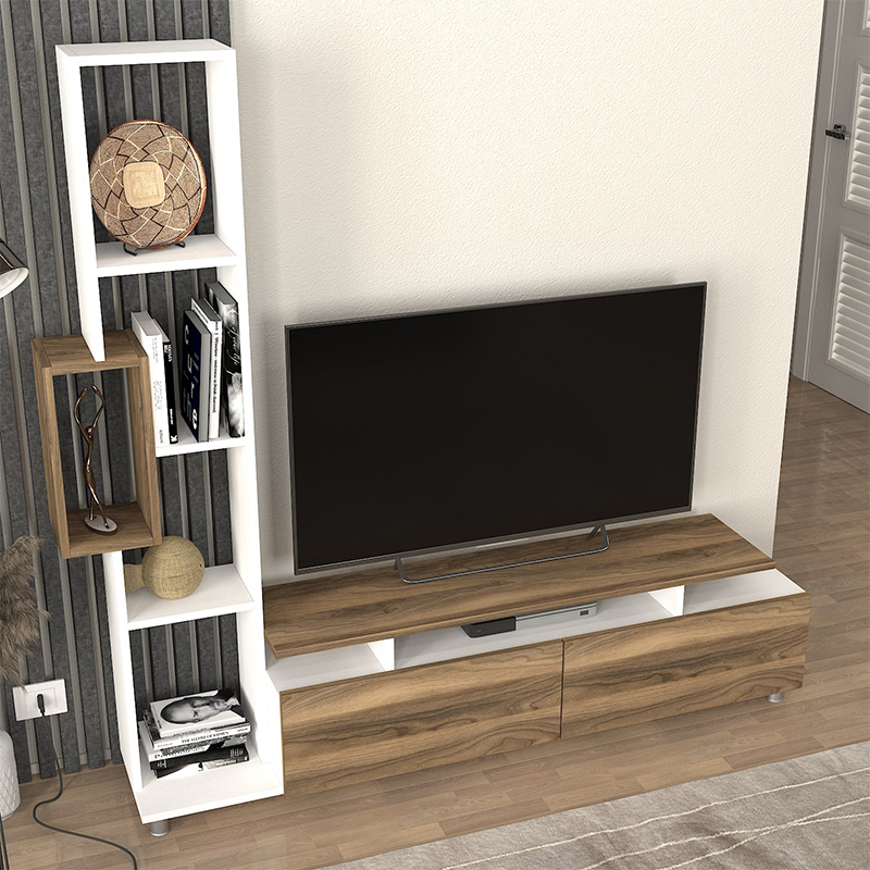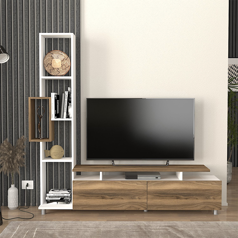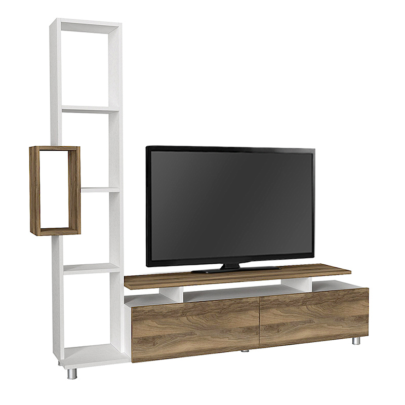 Σύνθεση τηλεόρασης Tulip Megapap από μελαμίνη χρώμα λευκό – καρυδί 160×29,5×160εκ.