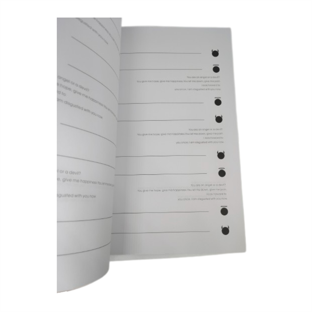 Τετράδιο μέγεθος 29x21cm. Ιδανικό για να παίξετε. Περιλαμβάνει σελίδες κενές, με γραμμές και με ερώτησης. Είναι στα αγγλικά.