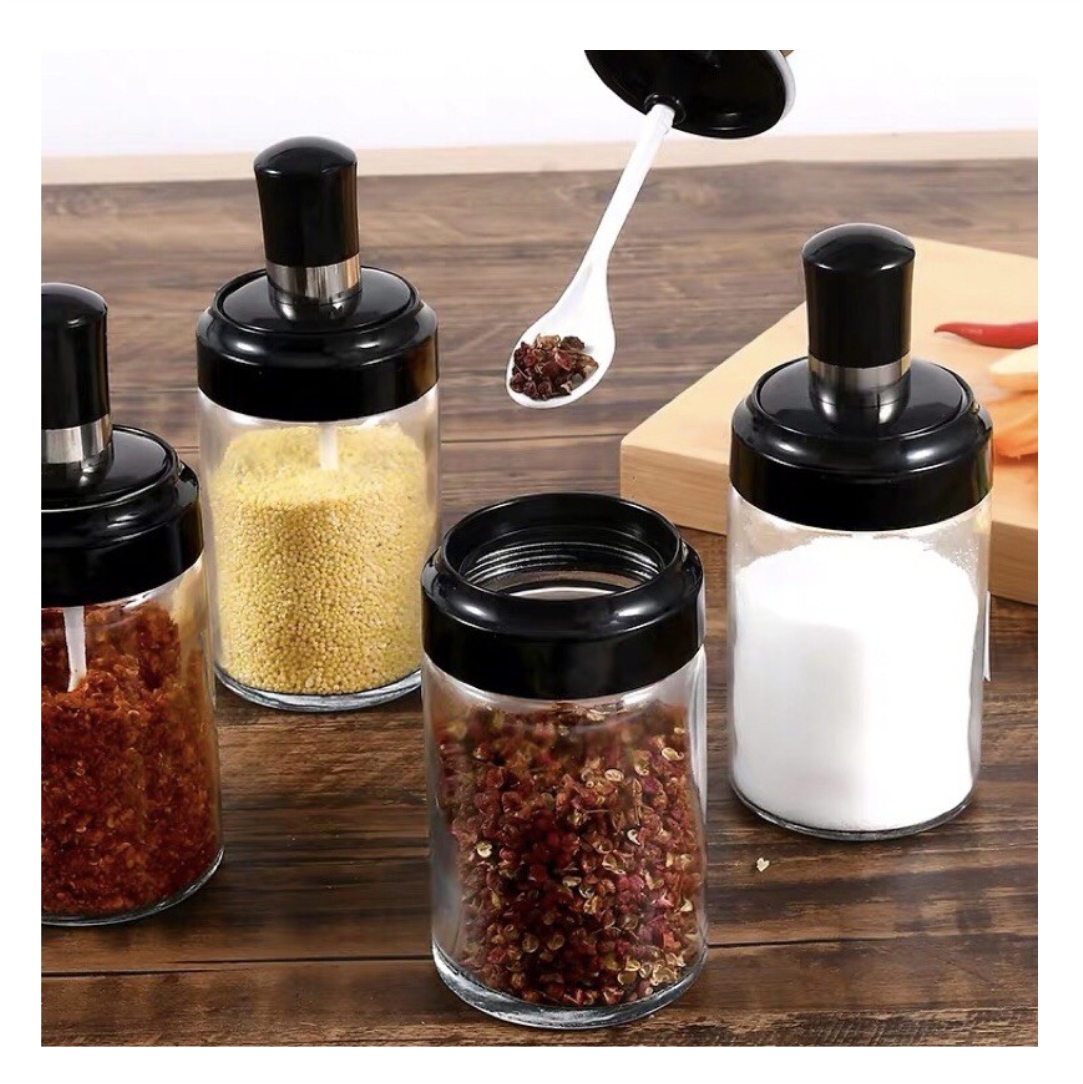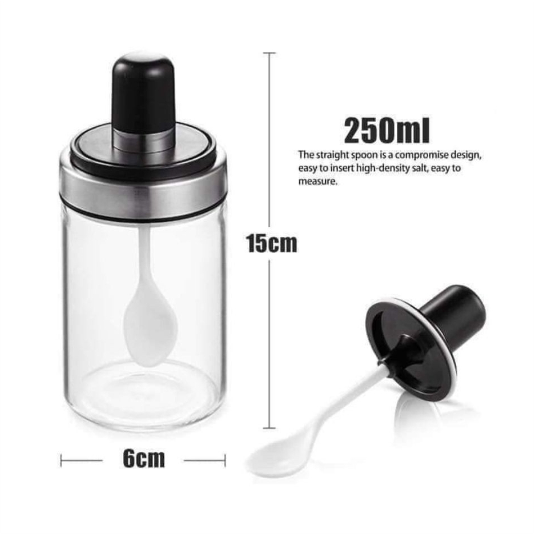 Θήκη μπαχαρικών με κουτάλι. Κατάλληλη για να αποθηκεύετε οποιαδήποτε μπαχαρικά επιθυμείτε, ώστε να τα χρησιμοποιείτε στις μαγειρικές σας παρασκευές και να έχετε εύκολη και άμεση πρόσβαση. Διαθέτει καπάκι ώστε το περιεχόμενο να παραμένει αναλλοίωτο και να διατηρείται η γεύση και το άρωμα τους. Διαστάσεις 15x6cm.