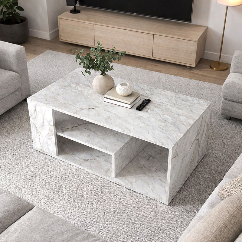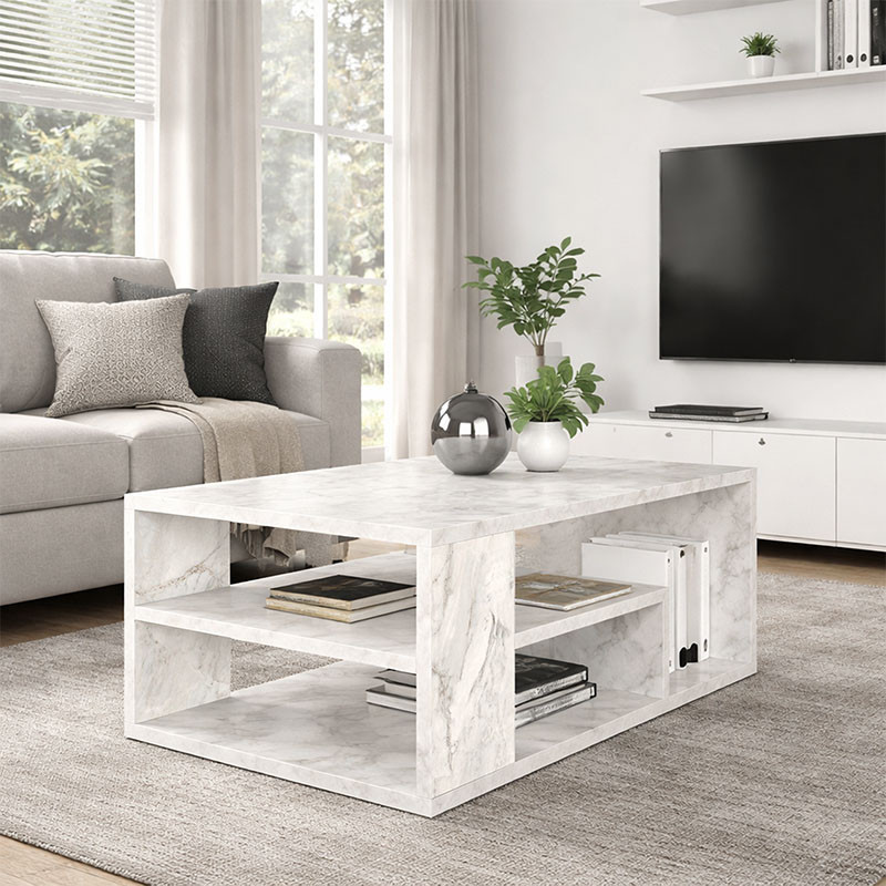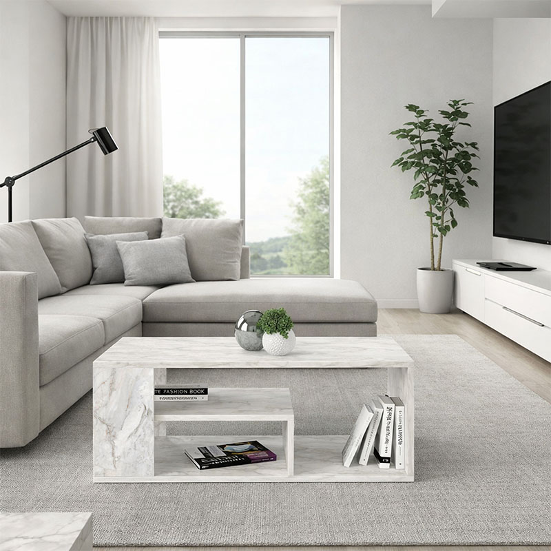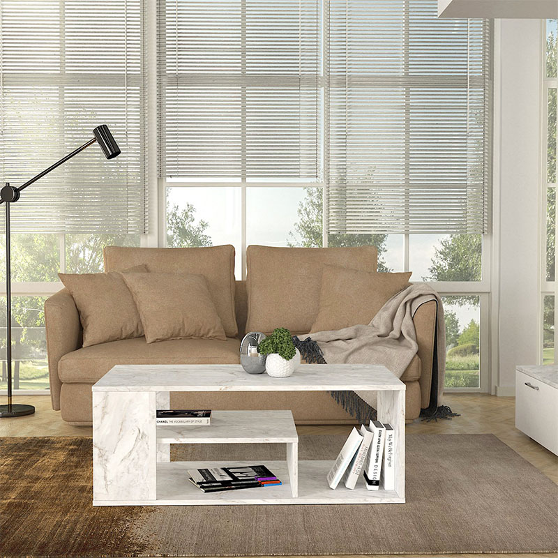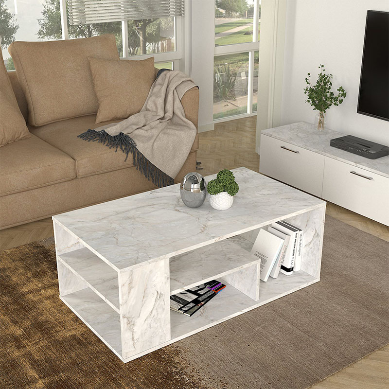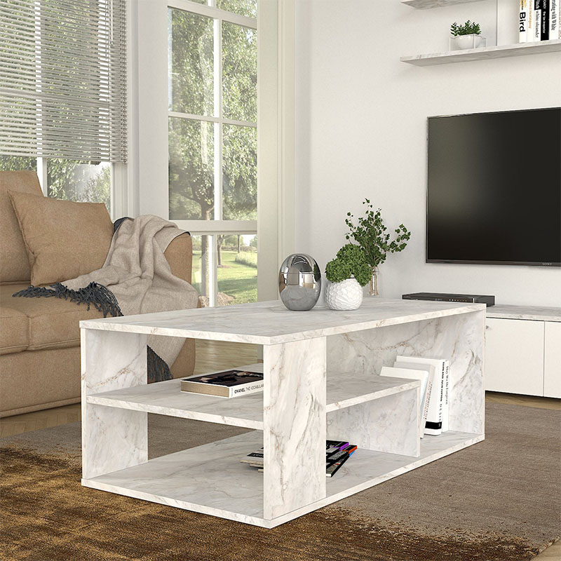 Τραπεζάκι σαλονιού Abdera Megapap χρώμα λευκό εφέ μαρμάρου 110x60x42εκ.