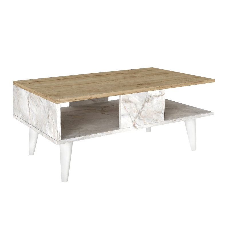 Τραπεζάκι σαλονιού Andros Megapap χρώμα sapphire oak – λευκό εφέ μαρμάρου 90x54x39,6εκ.